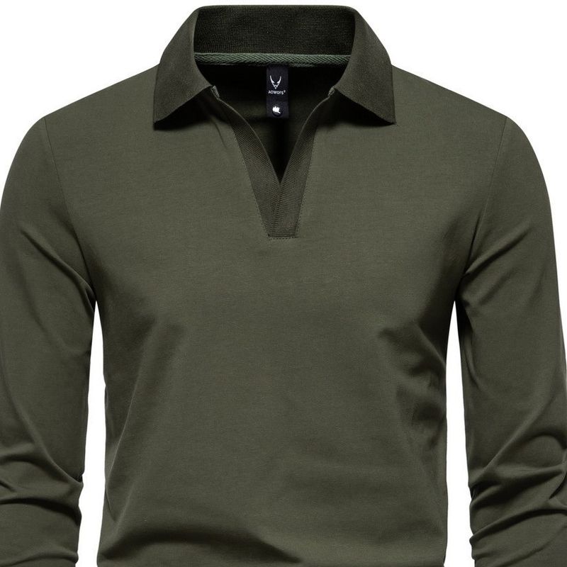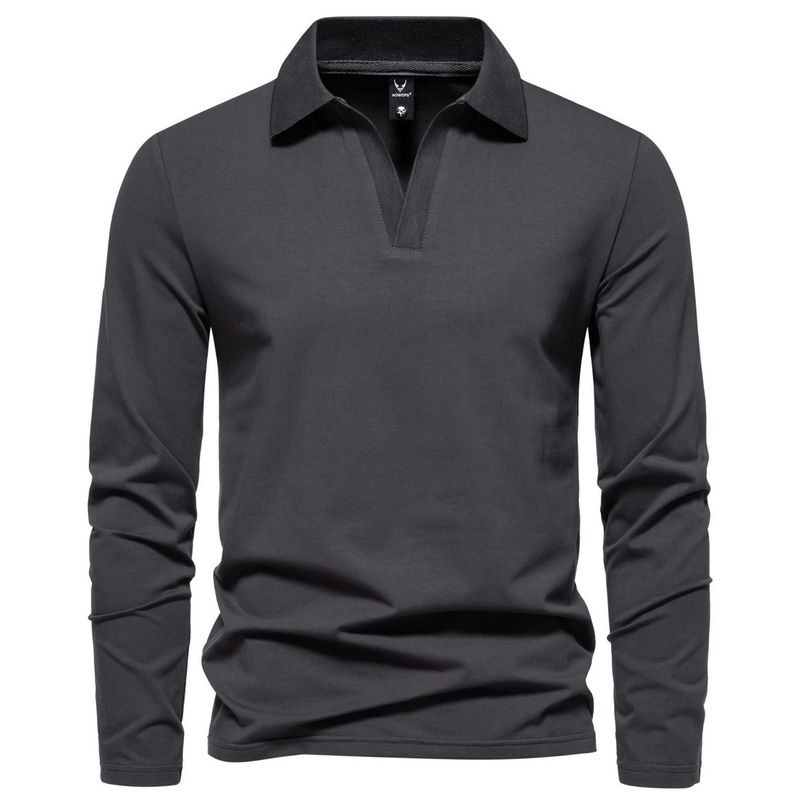 Retro Lapels Solid Color T-shirt Men's Fashion Long Sleeve Polo Shirt Bottoming Casual Top Black 5XL