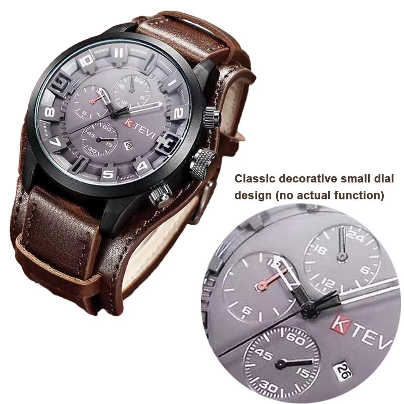 Retro Men's Watches High-end Luxury Man Watch PU Leather Strap Date Business Quartz Watch Big Dial Military tactical Wristwatch