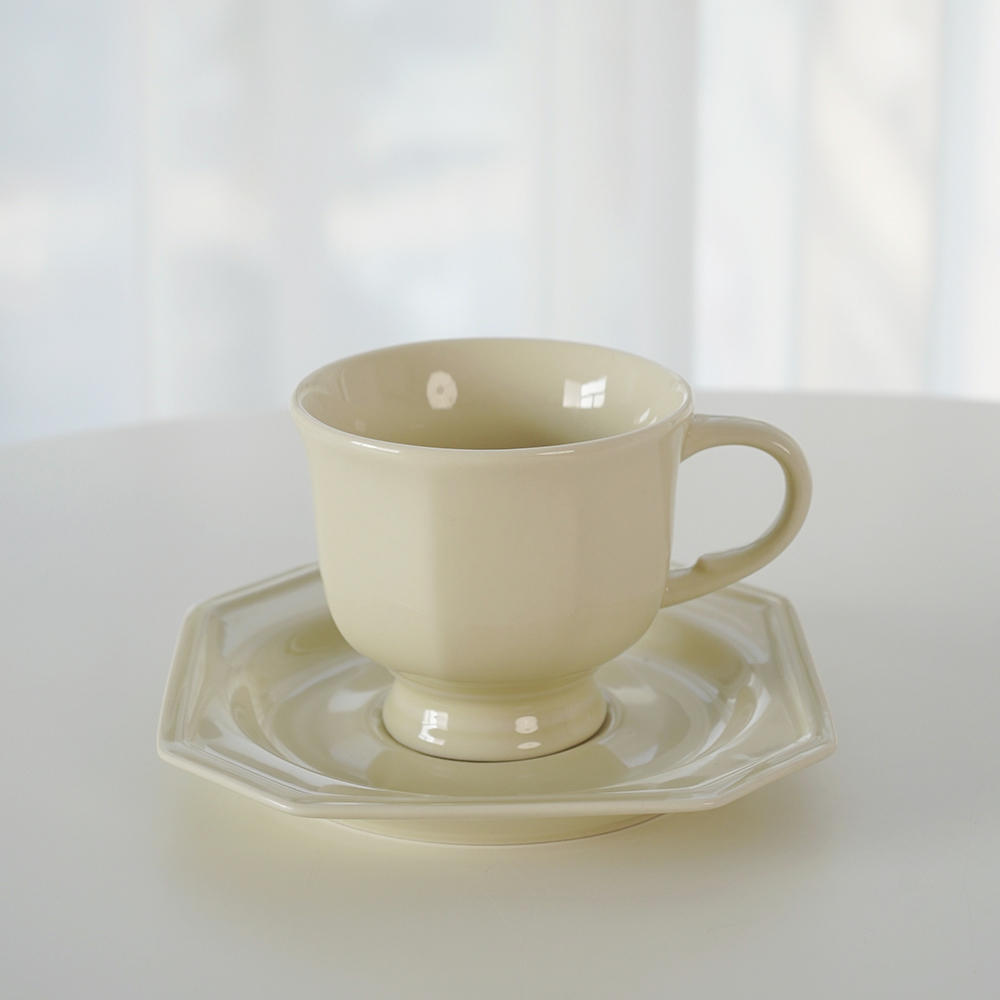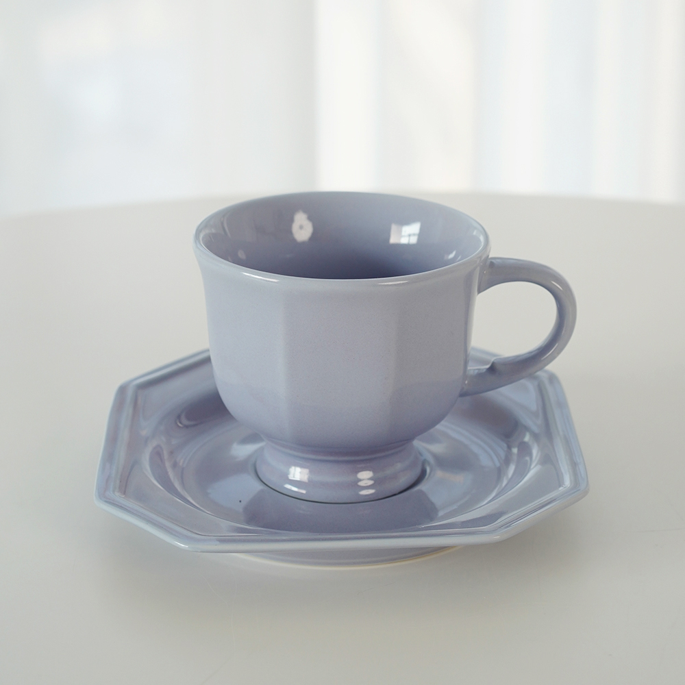 Color classification: Retro octagonal coffee cup and saucer/beige, retro octagonal coffee cup and saucer/dark powder, retro octagonal coffee cup and saucer/gray purple, retro octagonal dinner plate/beige retro octagonal dinner plate/dark powder, retro octagonal dinner plate/gray purple