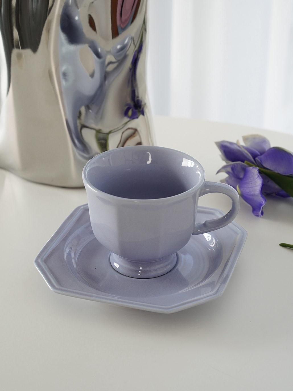 Retro Octagon Light Luxury Tea Cup And Saucer Set Purple Dinner plate