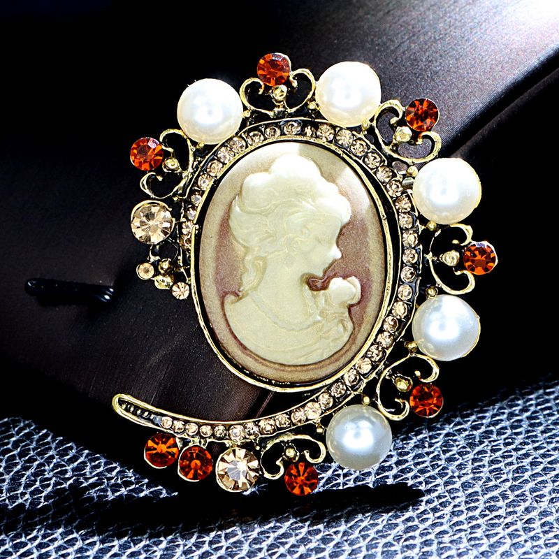 Retro Palace Style Medieval Beauty Head Brooch Exquisite Hollow Out Alloy Embossed Emblem Men's And Women's Clothing Accessories