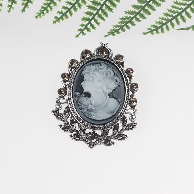 Retro Palace Style Medieval Beauty Head Brooch Exquisite Hollow Out Alloy Embossed Emblem Men's And Women's Clothing Accessories