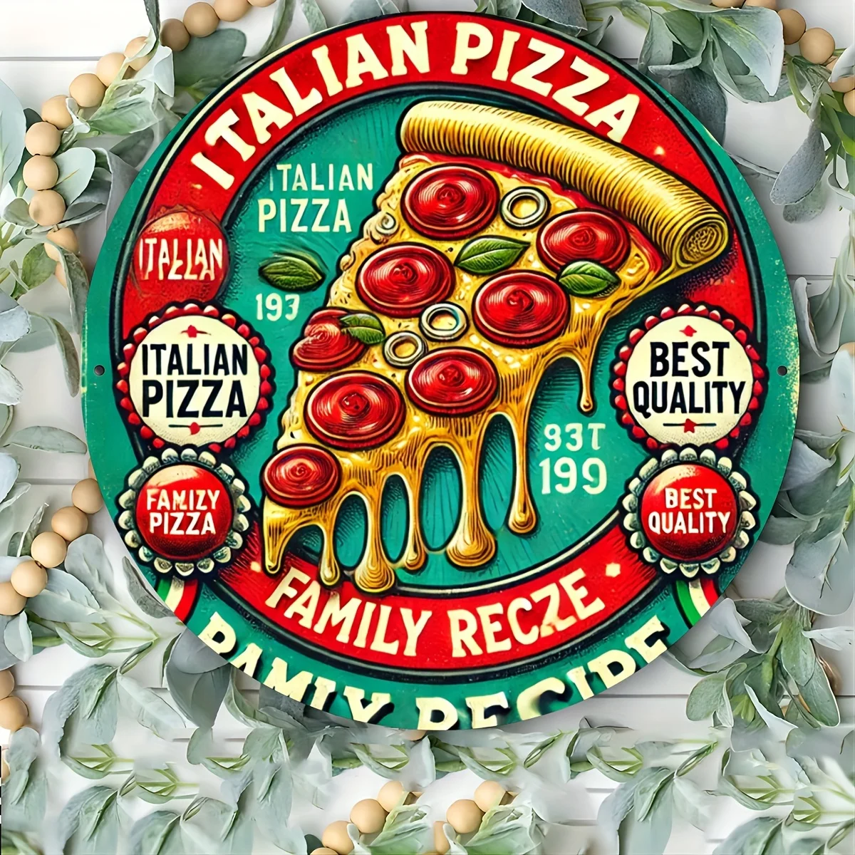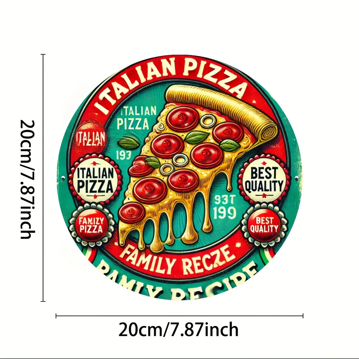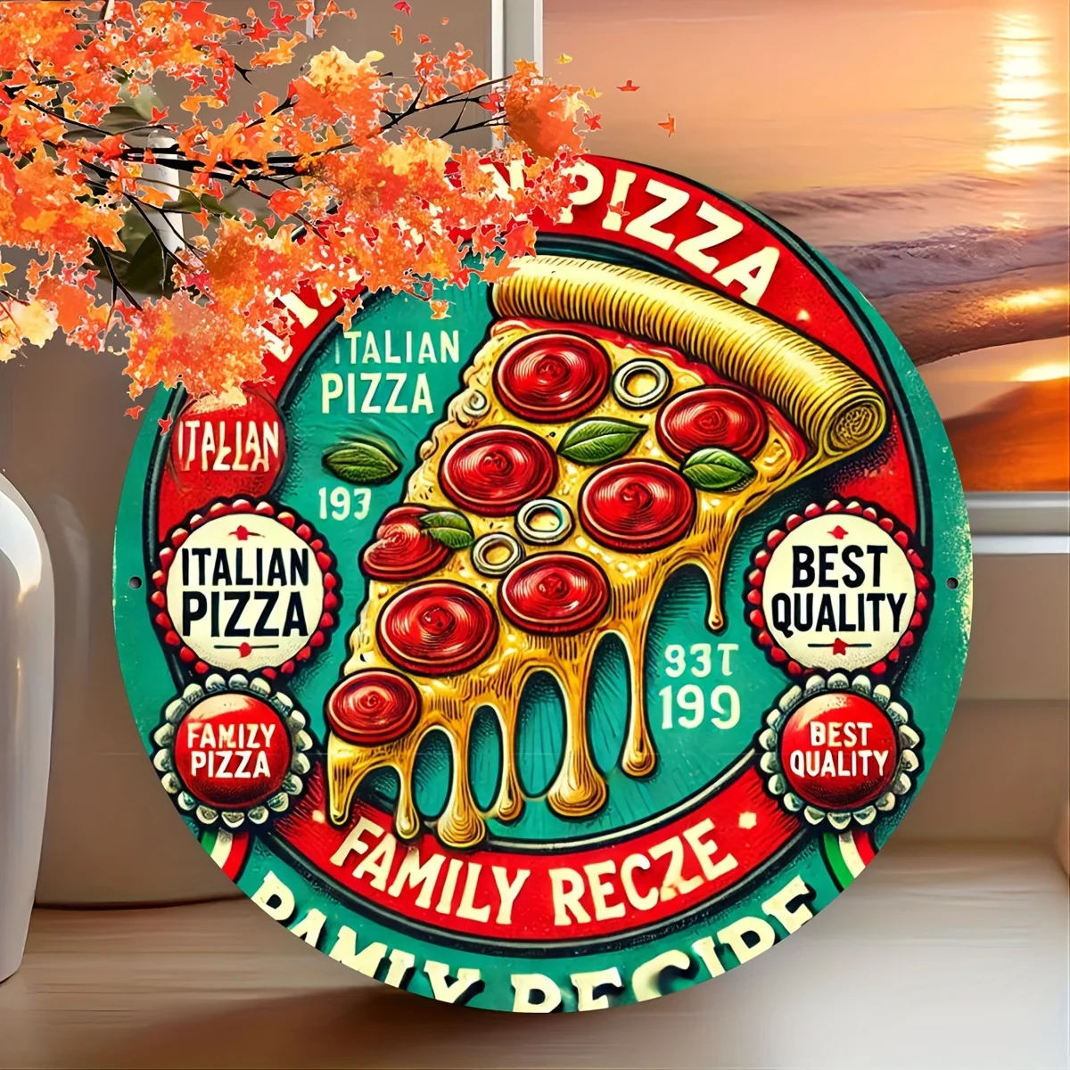 Retro Pizza Theme Round Aluminum Sign - 8x8 inch Aluminum Wall Art, Suitable for Home, Bar, and Cafe Decoration