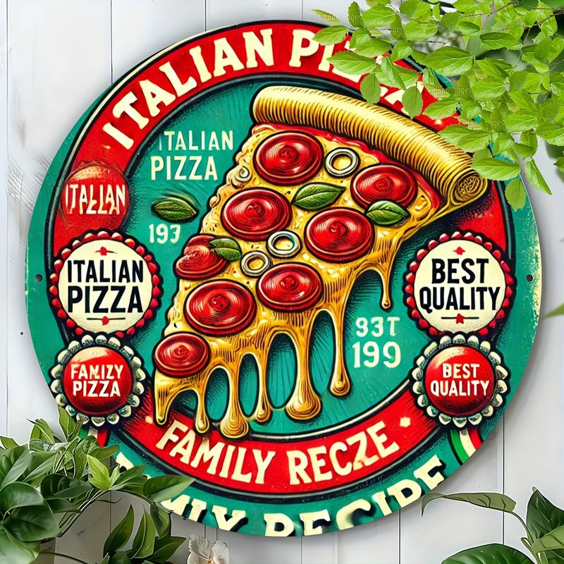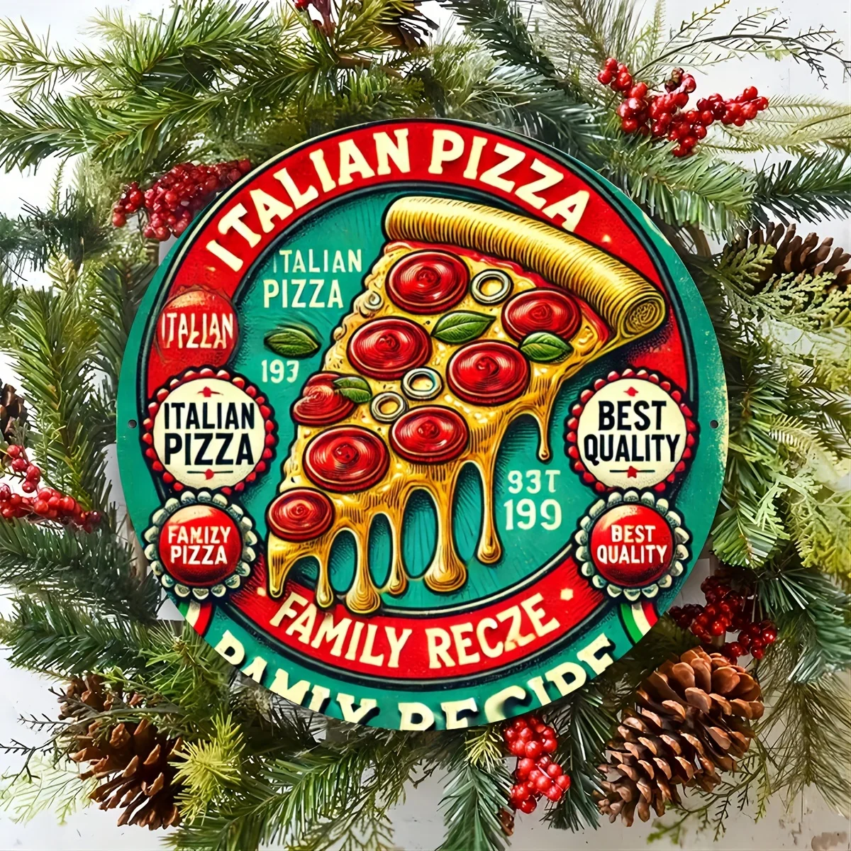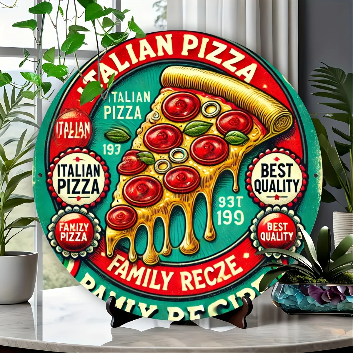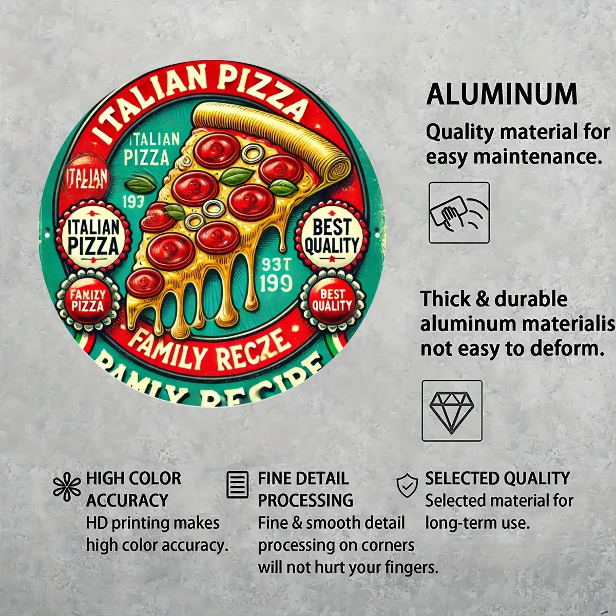 Retro Pizza Theme Round Aluminum Sign - 8x8 inch Aluminum Wall Art, Suitable for Home, Bar, and Cafe Decoration