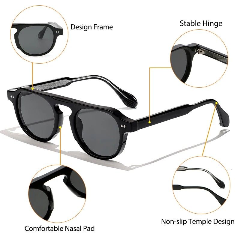 Retro Round Sunglasses Men Punk Core Insert Temples Sun Glasses for Women Travel Eyeywear Vintage Steampunk Rivet Men UV400