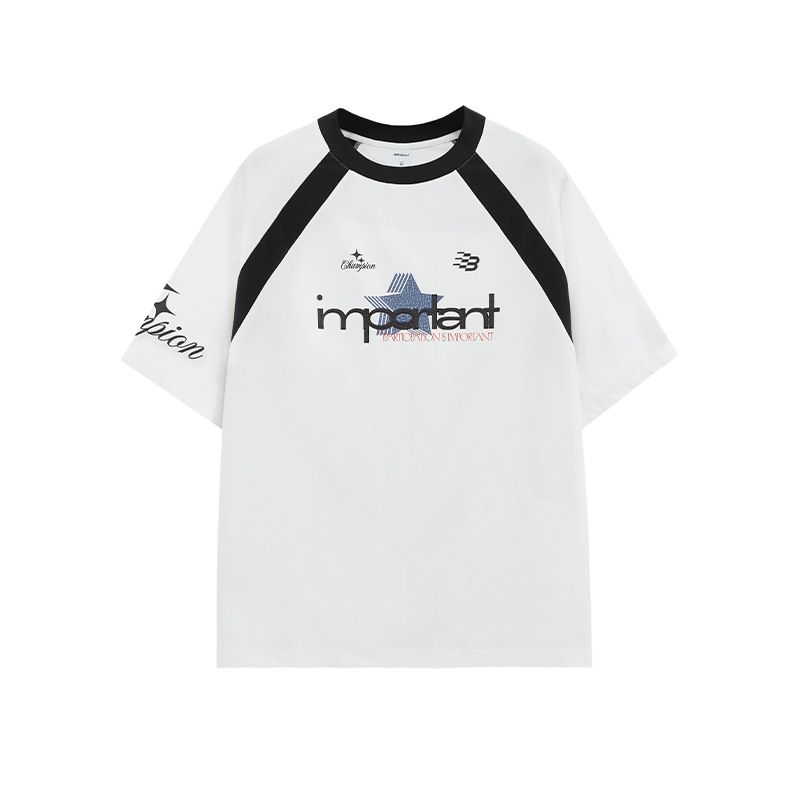 Retro Sports T-shirt Five-in-one Technology Fabric American Casual Style Short Sleeve Gray And Blue L
