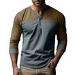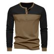 Retro Trendy Long-sleeve Color Matching Henry Collar Bottoming Shirt Casual T-shirt Brown Army Green M