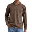 Retro Washed Distressed Cotton Lapel Long Sleeve Polo Shirt Brown L