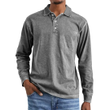 Retro Washed Distressed Cotton Lapel Long Sleeve Polo Shirt Gray 4XL