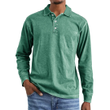 Retro Washed Distressed Cotton Lapel Long Sleeve Polo Shirt Green 2XL