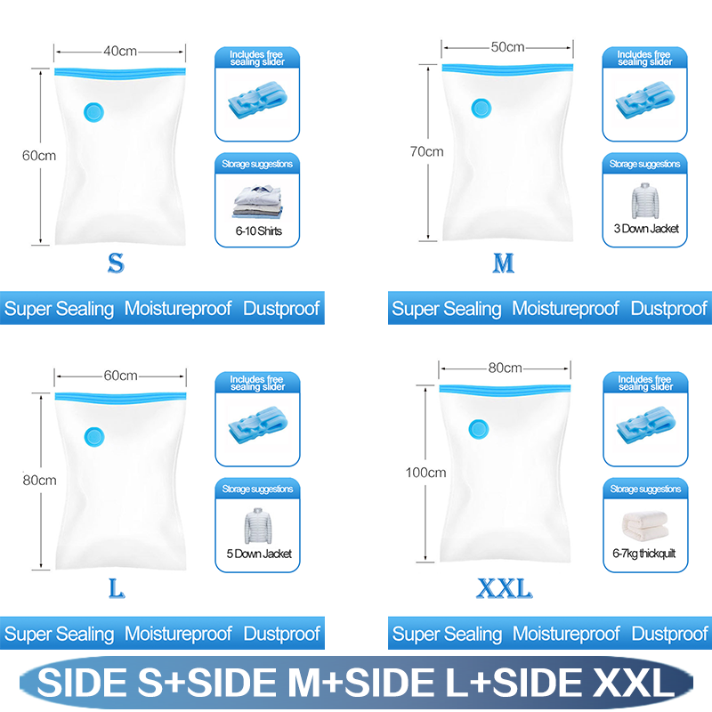 Reusable Compression Empty Bag Sealer Clothes Travel Packing Organizer Vacuum Large Plastic Storage Bags Storing Clothes Blanket