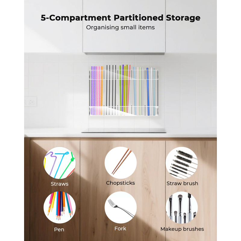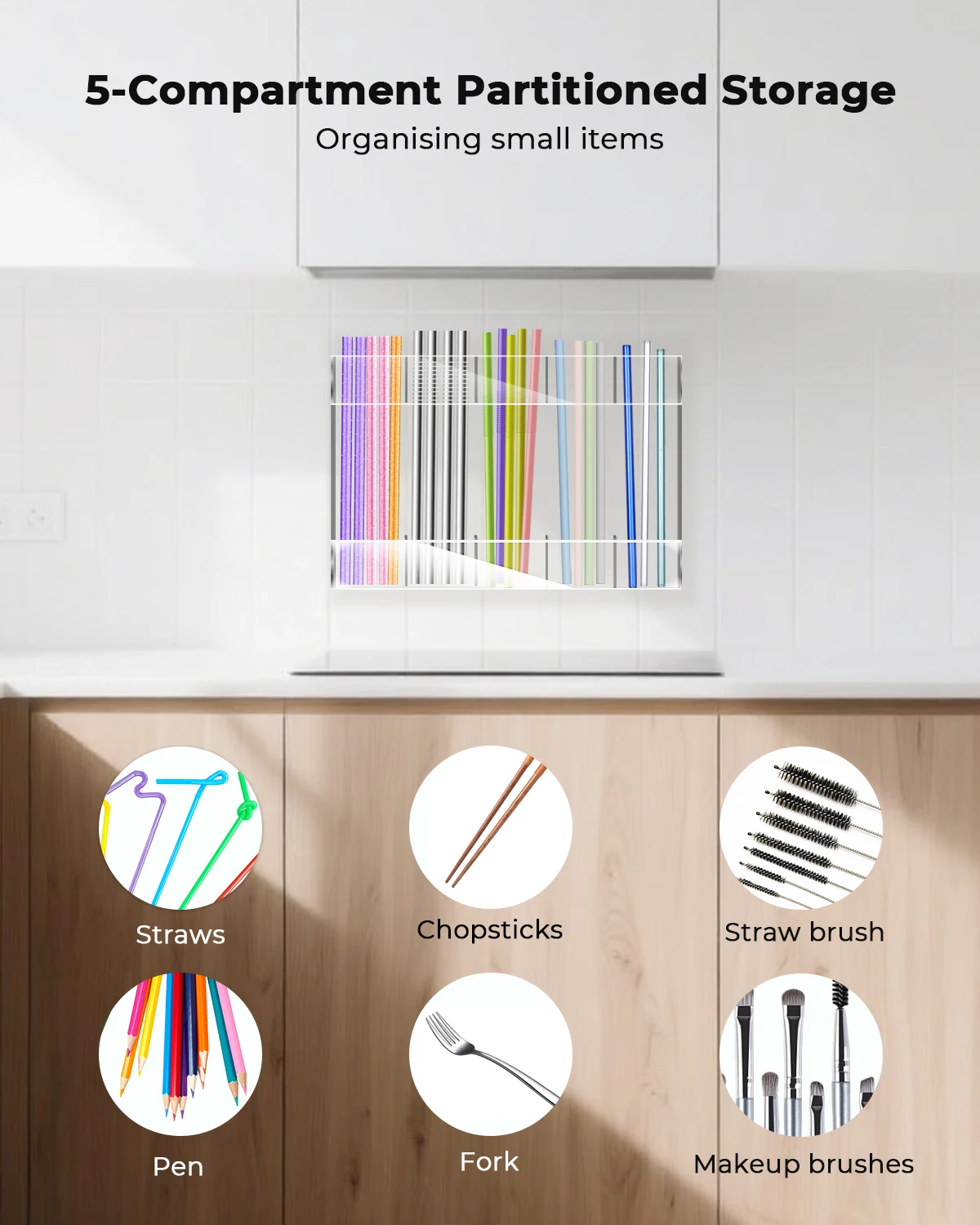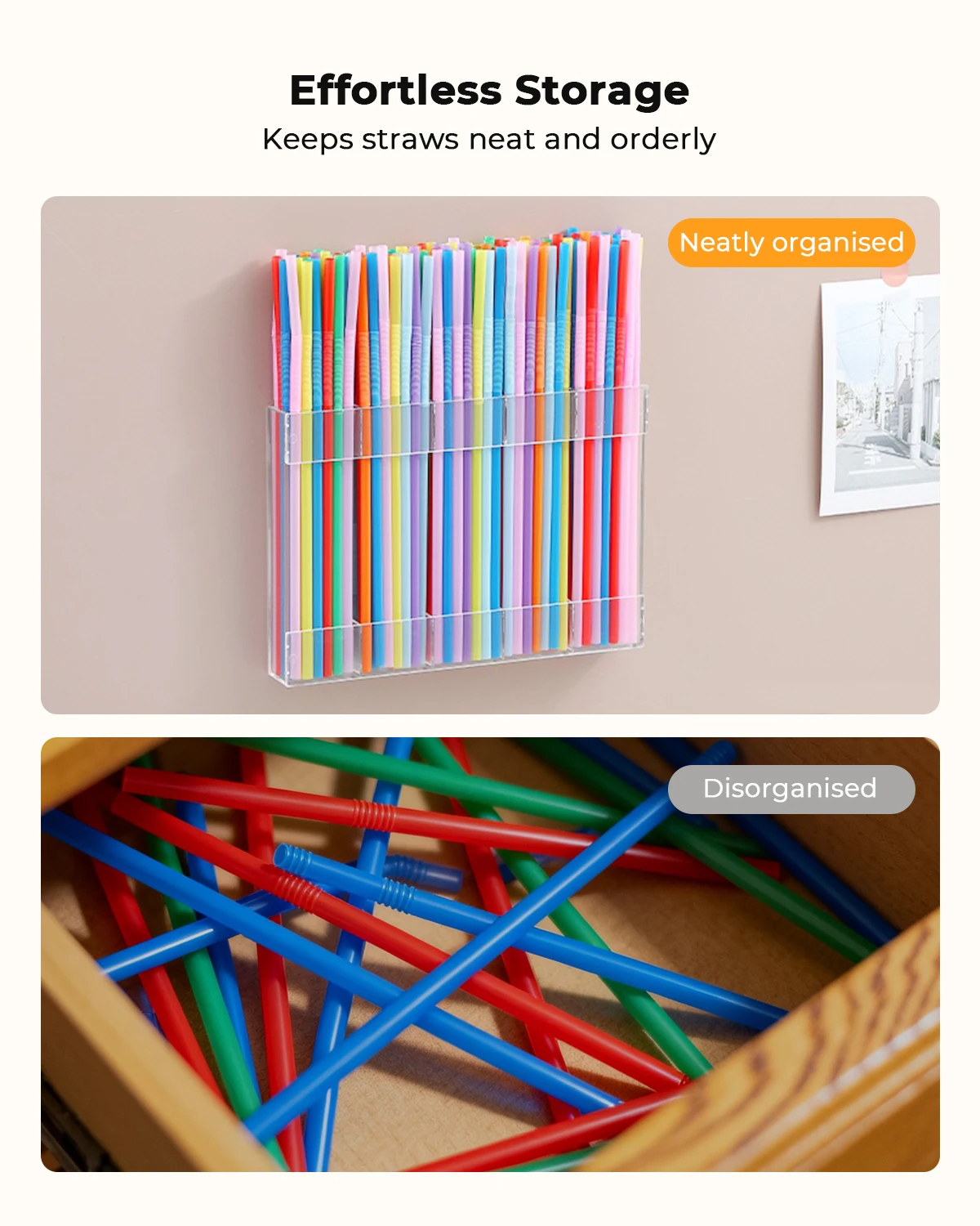 【Separate Compartment Design】Features divided sections for organizing different types of straws. Instantly see your straw inventory and replenish as needed—ideal for daily use