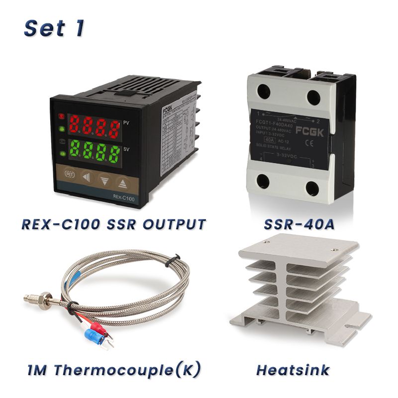 5.Set 4  ------include  include a REX-C100 SSR output thermostat+  SSR 40DA relay+   a 2M K type sensor ,  Aradiator