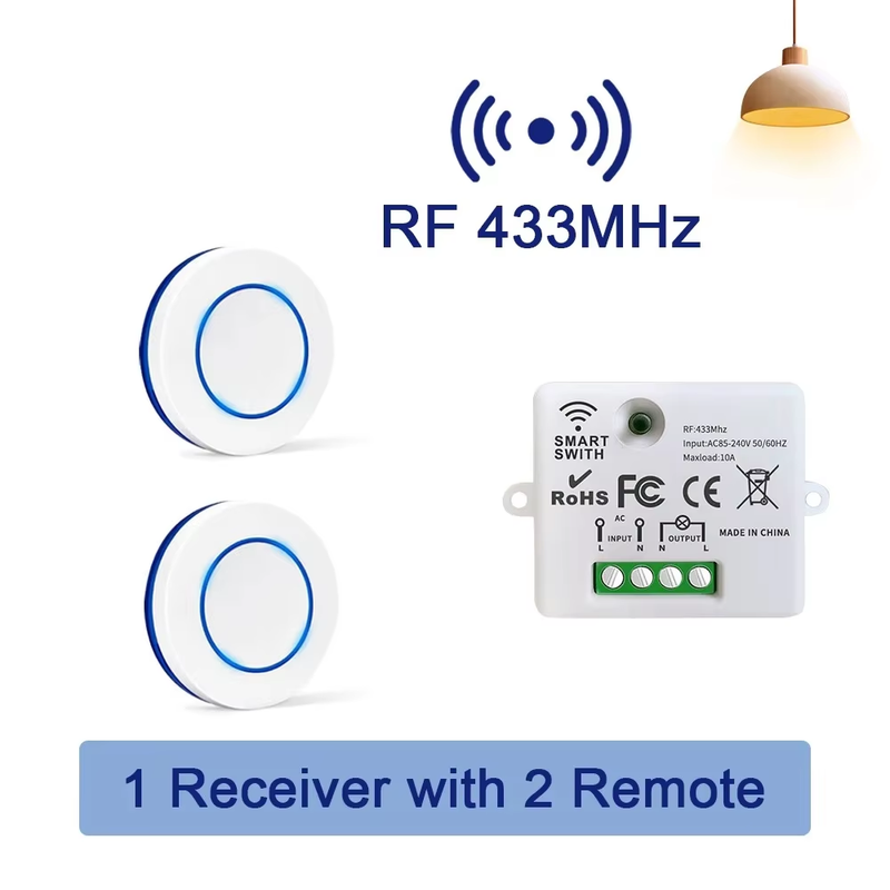 RF 433MHz Wireless Smart Light Switch 220V 110V Relay Receiver Mini Round Button Wall Panel Switch Remote Control for LED Lamp