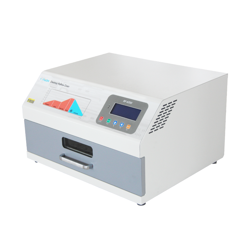 The ITECH series reflow oven adopts 3D hot air circulation + super infrared radiation heating to make the internal heat flow evenly, which is suitable for the reflow requirements of different alloys and lead-free solders. It is suitable for design and development, experimental teaching, small batch production and processing.