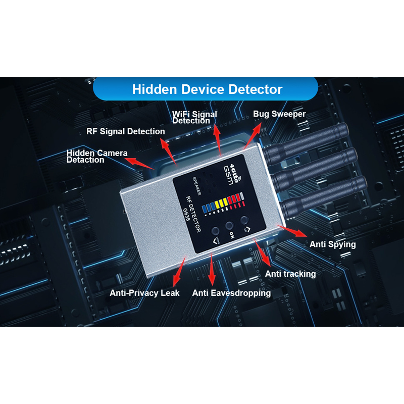Please move the power switch to "ON" position to power on the device, and press the "UP" button to increase sensitivity, press "DOWN" button to decrease sensitivity, close the detector to your cell phone, if the detector LED light flashes, you can handle the detector close to object area to inspection, if the detector LED light does not flash, you can rotate the knob to turn the fourth LED light on, increase the sensitive, then you can get the best performance, please do not turn the tenth LED light on, it will reached the maximum sensitivity, the device will alarm immediately.