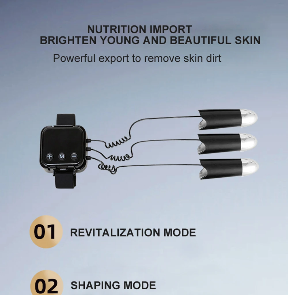 Adopting micro current technology: the epidermis anddermis tighten and lift the skin, promote hydration,promote protein synthesis,increase skin elasticity,improve skin quality,and have a positive electrodeinside the cells The external electrode is the negativeelectrode, and the internal and external frictionalternating current.