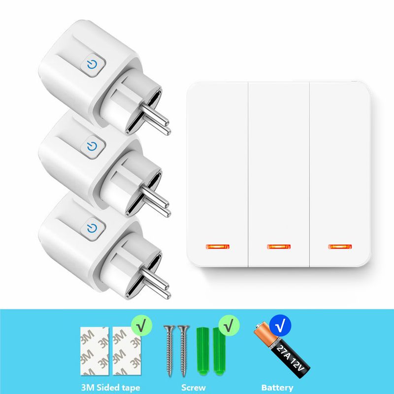 RF Wireless Smart Plug 110V 220V 16A High-power Socket and 86 Wireless Push Button Wall Switch with Battery for Home Appliance