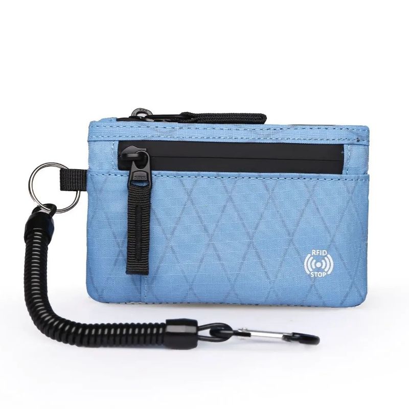 Rfid Credit Card Holder Men Wallets Luxury Nylon Slim Wallet Zipper Key Card Case Male Tactical Purse Coin Purse With Carabiner