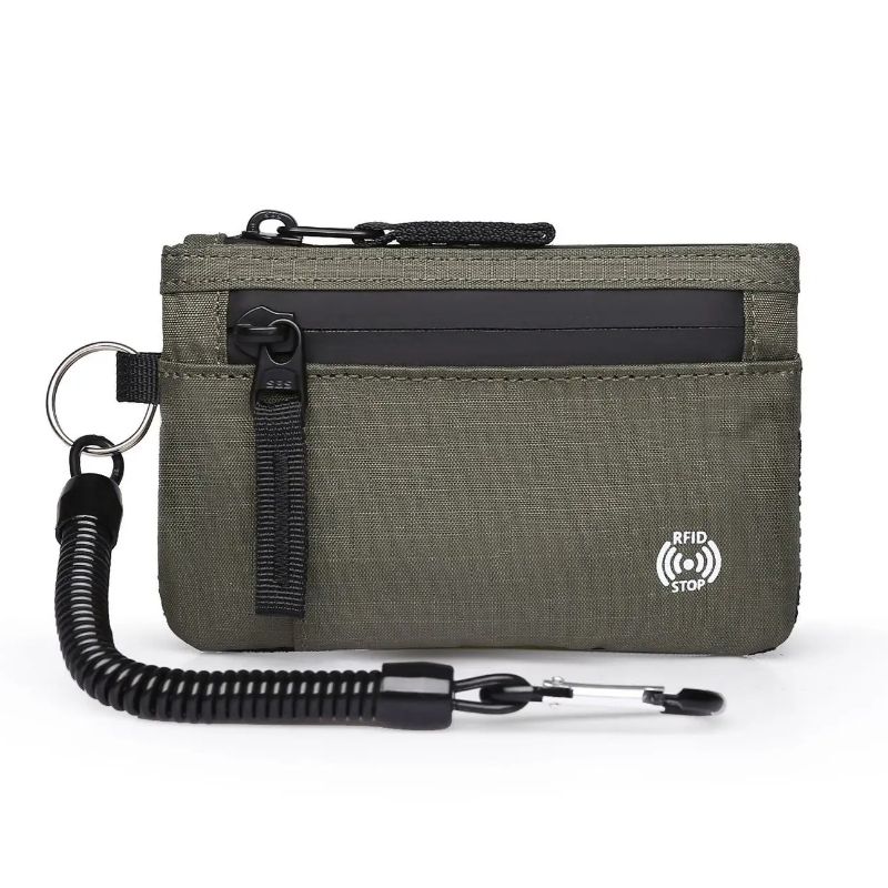 Rfid Credit Card Holder Men Wallets Luxury Nylon Slim Wallet Zipper Key Card Case Male Tactical Purse Coin Purse With Carabiner
