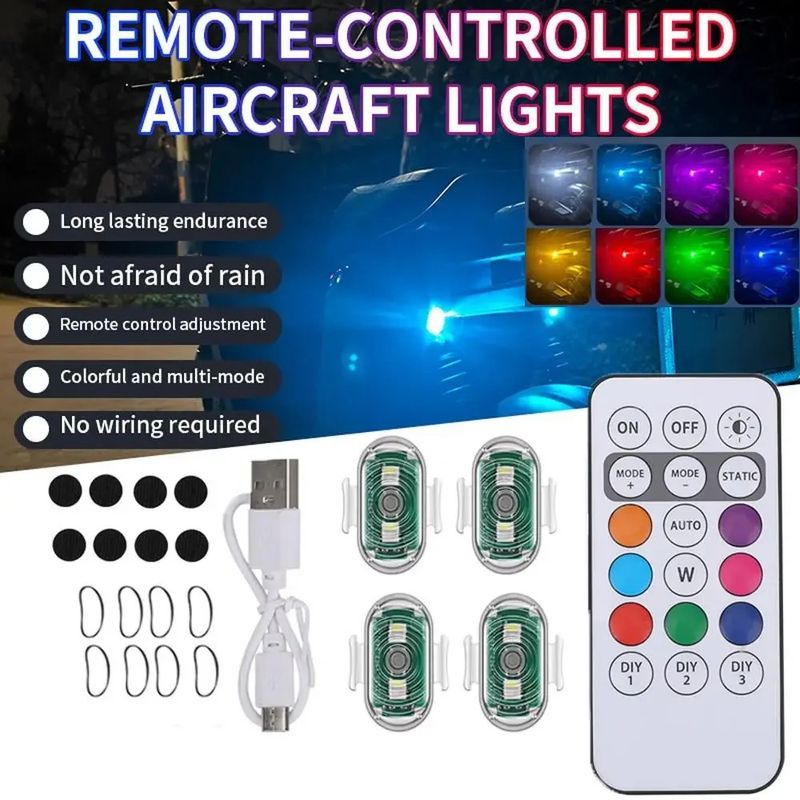 Wireless Light Aircraft Airplane Helicopter Warning Lights RGB Led Aircraft Strobe lights Motorcycle Lights LED Flash Position