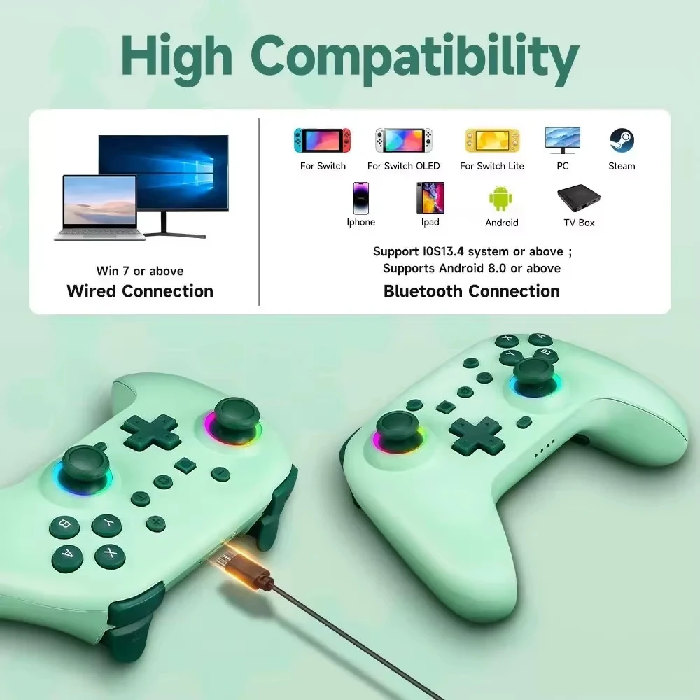 RGB Wireless BT Controller For Nintendo Switch2/OLED/Lite Gamepad For Android Phone/PC Joystick/TV Box/Steam With Turbo Function