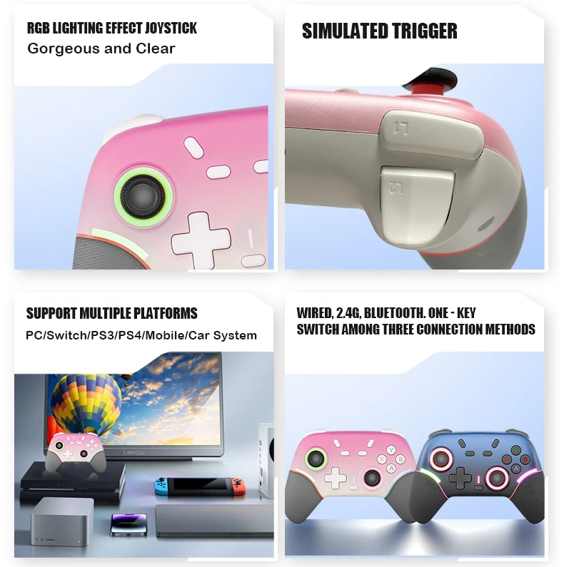 RGB Wireless Controller for Nintendo Switch 2/ OLED/ Lite/ PC/Android Gamepad PC Joystick Controle With Turbo Function