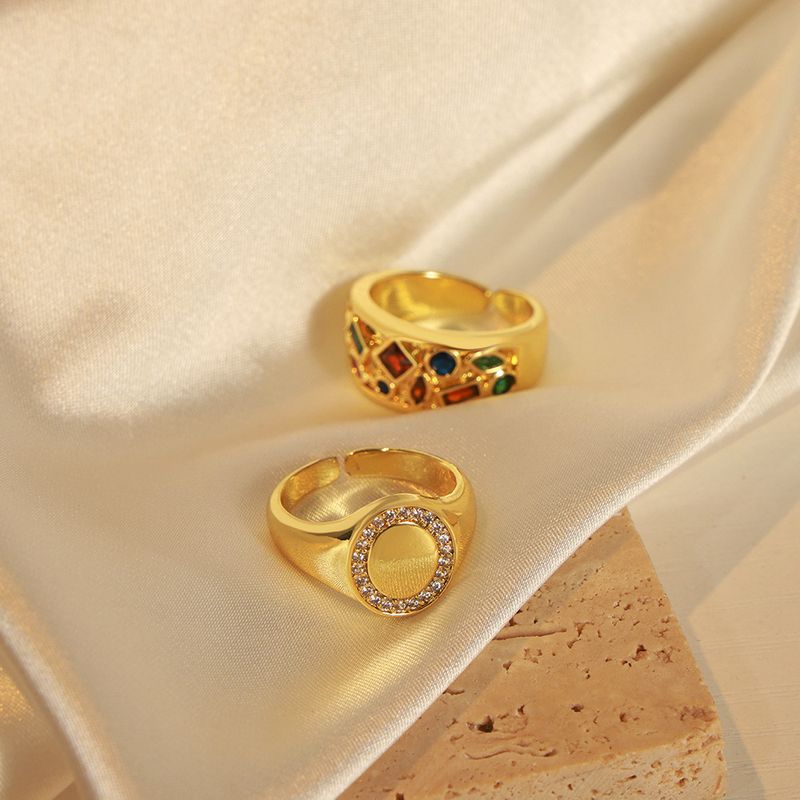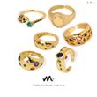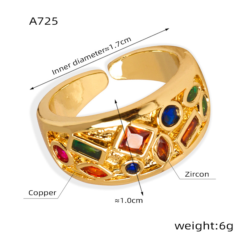 Color: A722-gold inlaid zirconium ring, A723-gold inlaid zirconium oval ring, A724-inlaid zircon animal element ring, A725-gold geometric zircon element ring, A726-gold dot zircon ring, a726-gold White zircon ring, a727-gold dot star zircon ring