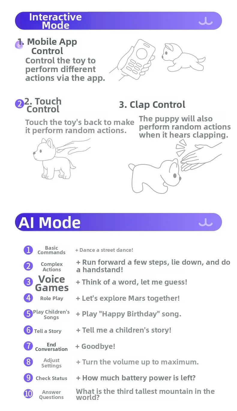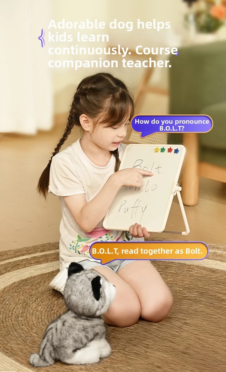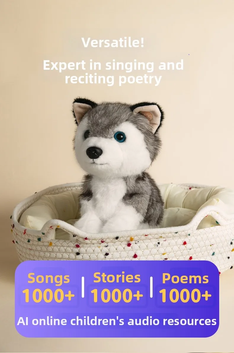 Featuring over 1000 songs, 1000 stories, and 1000 poems, the robot dog offers a wealth of content for you to explore, endless learning and entertainment through AI-driven playback.