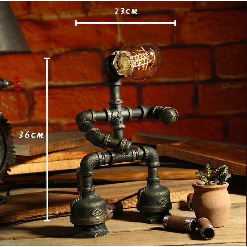 Robot Table Lamp Vintage Loft Iron Pipe Desk Lamp Industrial Led Table Lamps For Bedside Cafe Indoor Retro Decor Light Fixtures B EU no bulb
