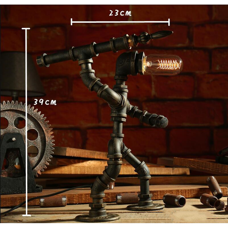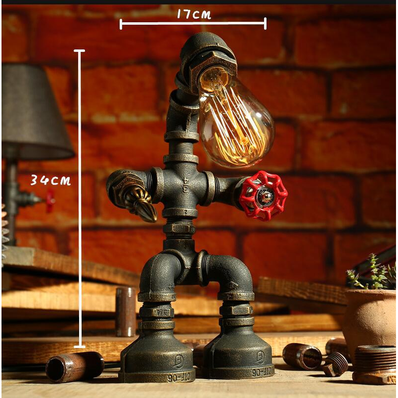 Robot Table Lamp Vintage Loft Iron Pipe Desk Lamp Industrial Led Table Lamps For Bedside Cafe Indoor Retro Decor Light Fixtures G UK no bulb