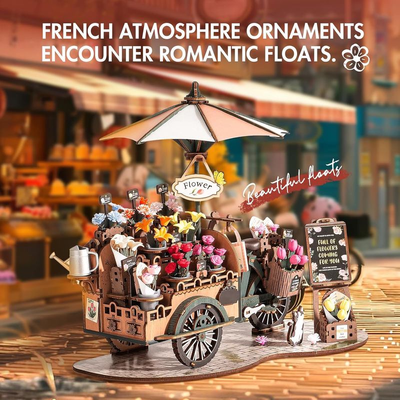 ROBOTIME Model Kits For Adults To Build Blossom Cart, 3D Wooden Puzzles Home Decor Craft Gifts For Adults Women Girls Boys TGS03