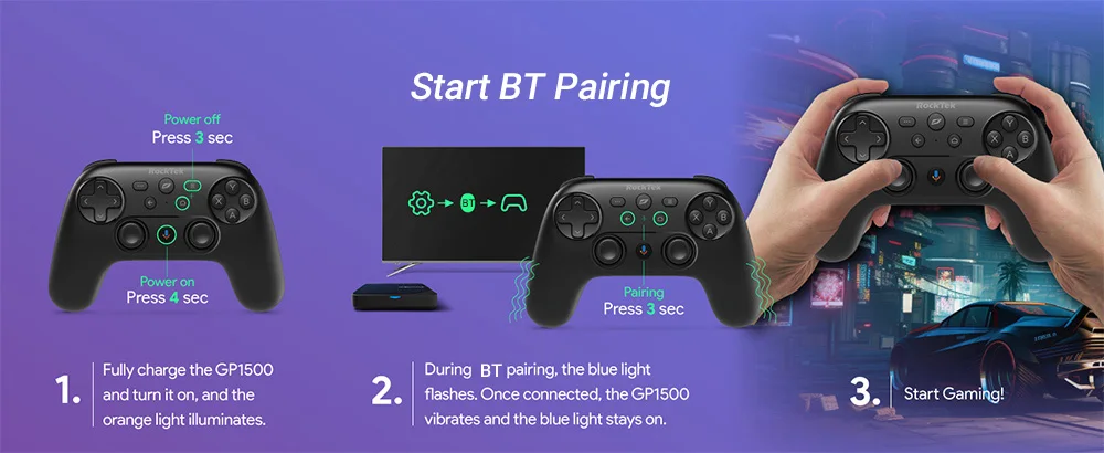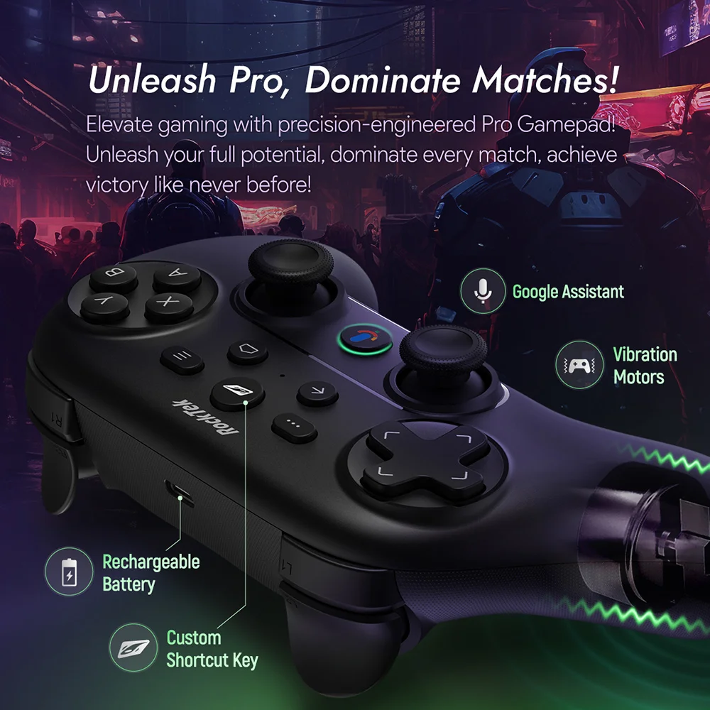 【Wide Applicability】RockTek GP1500 Gamepad Game Controller is compatible with Android, Google Certified devices, TVs, PCs, cell phones, and tablets, providing the ultimate gaming experience.