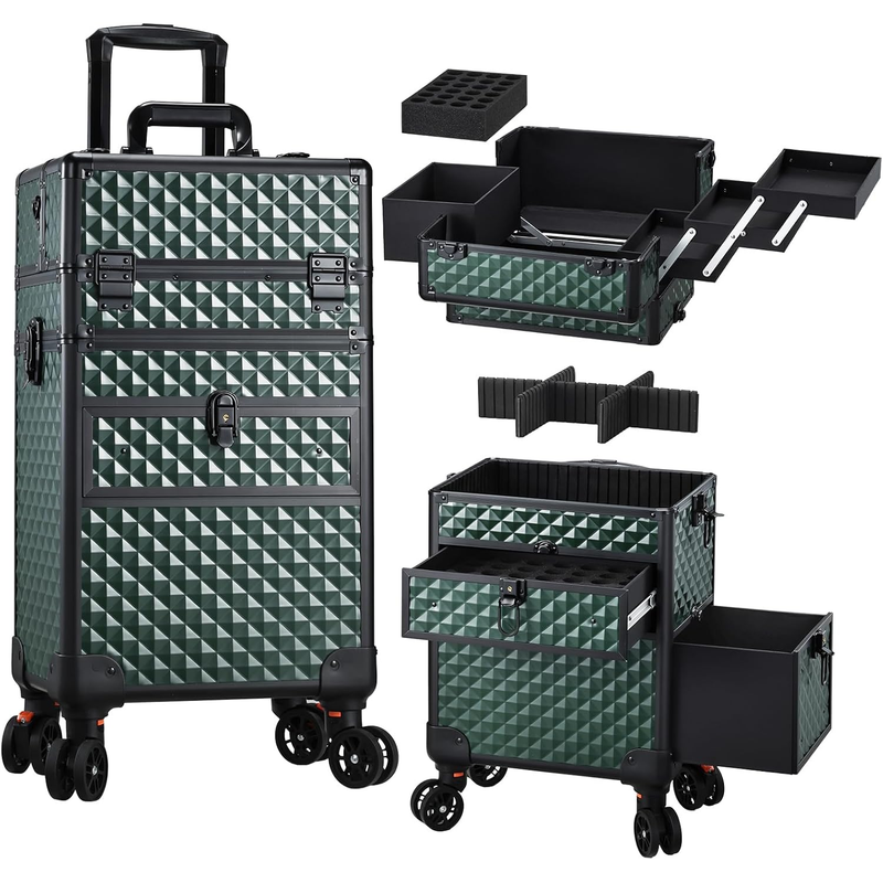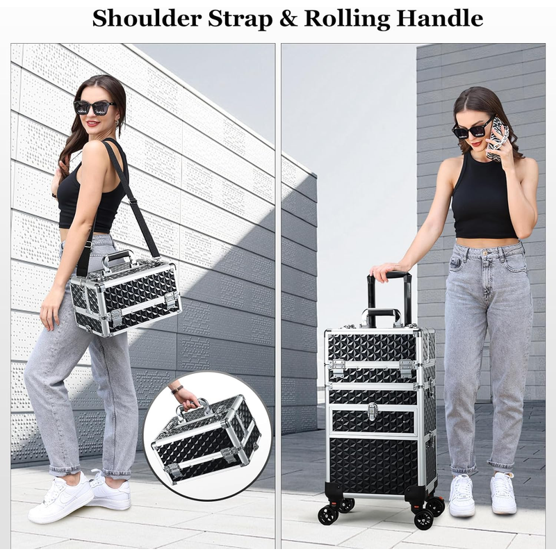 Rolling Makeup Case with Wheels Drawers Large Professional Cosmetology Trolley Case Lockable Travel Cosmetic Storage Train Cases