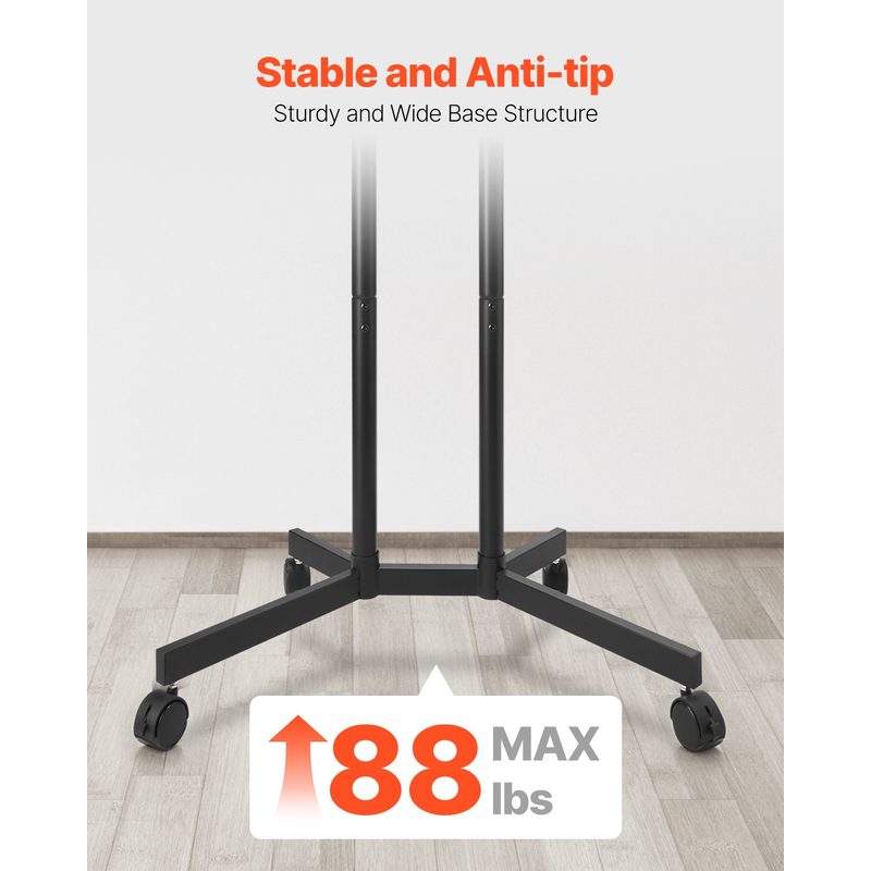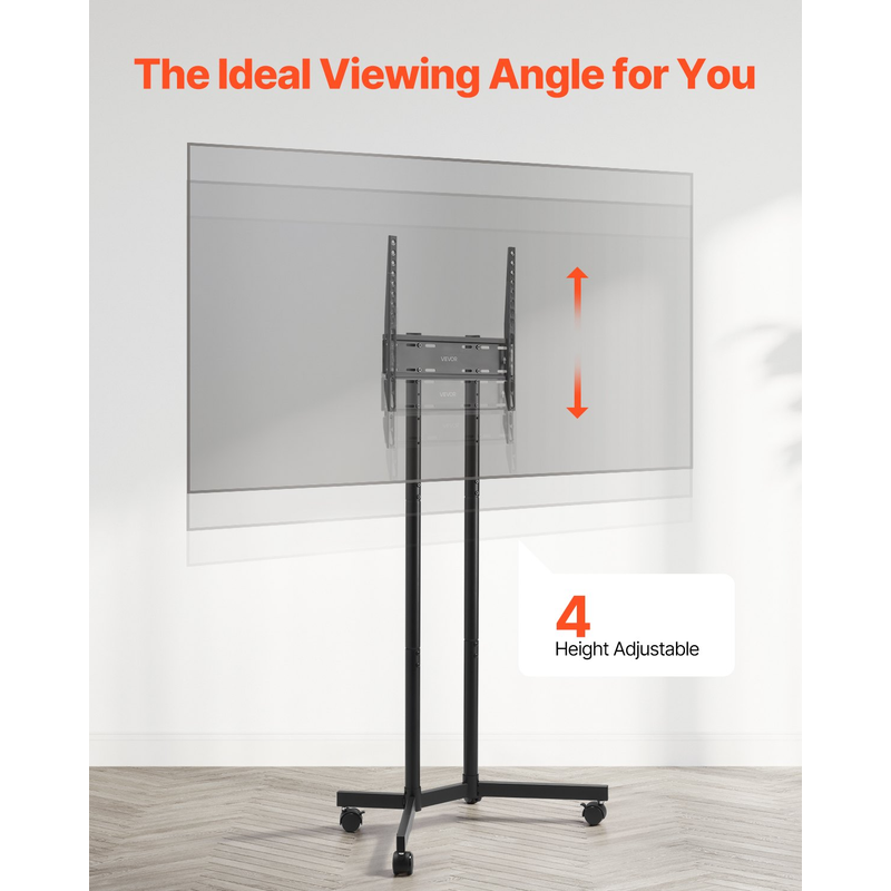 Stability and Security: Our moving TV stand offers exceptional stability, supporting up to 88 lbs to prevent tipping. The adjustable tilt design also allows you to customize the viewing angle according to your preferences, ensuring the ideal experience every time you watch.