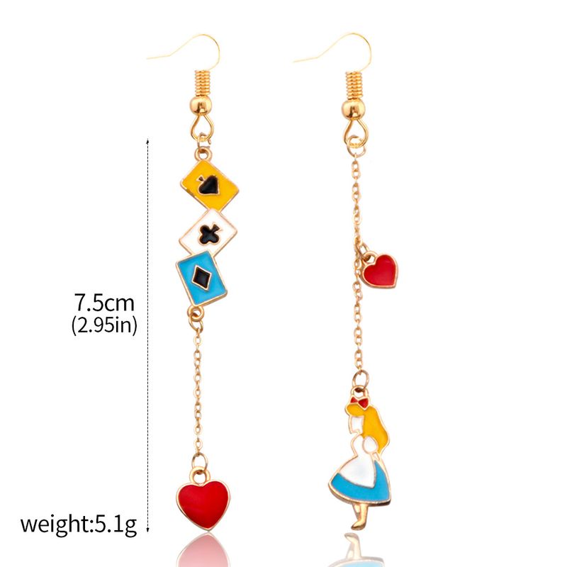 Romantic Drop Earrings Wonderland Princess Heart Poker Long Earrings for Women Girls Accessories Gifts Jewelry