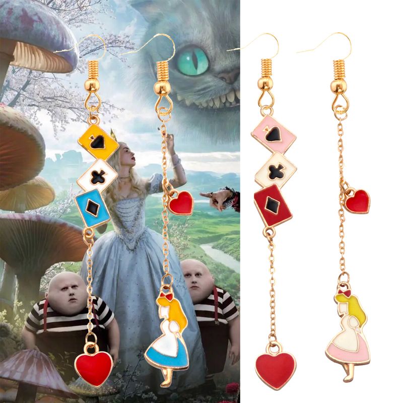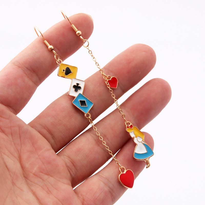 Romantic Drop Earrings Wonderland Princess Heart Poker Long Earrings for Women Girls Accessories Gifts Jewelry