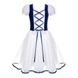 Lacework short bubble sleeves, square neckline, velvet top bodice is adorned with criss-cross ribbons for tying a bowknot at front waist.