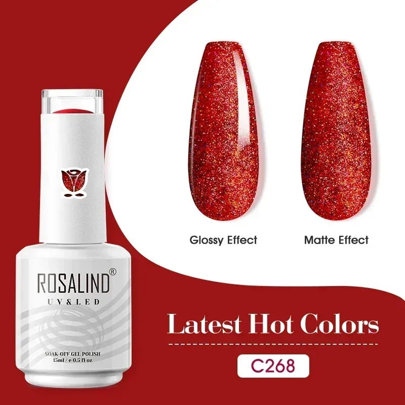 ROSALIND 15ml Colorful Gel Nail Polish Nails Design Cured with LED/UV Lamp Semi Permanent Need Base Top Coat Nail Gel