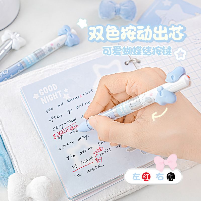 RosyPosy Cartoon Gel Pen Bow Tie High Value Push Action Dual Color Signature Pens, Exam Note-taking Highlighting Gift Stationery
