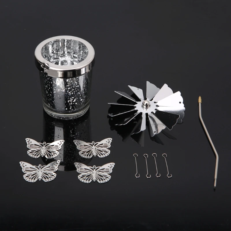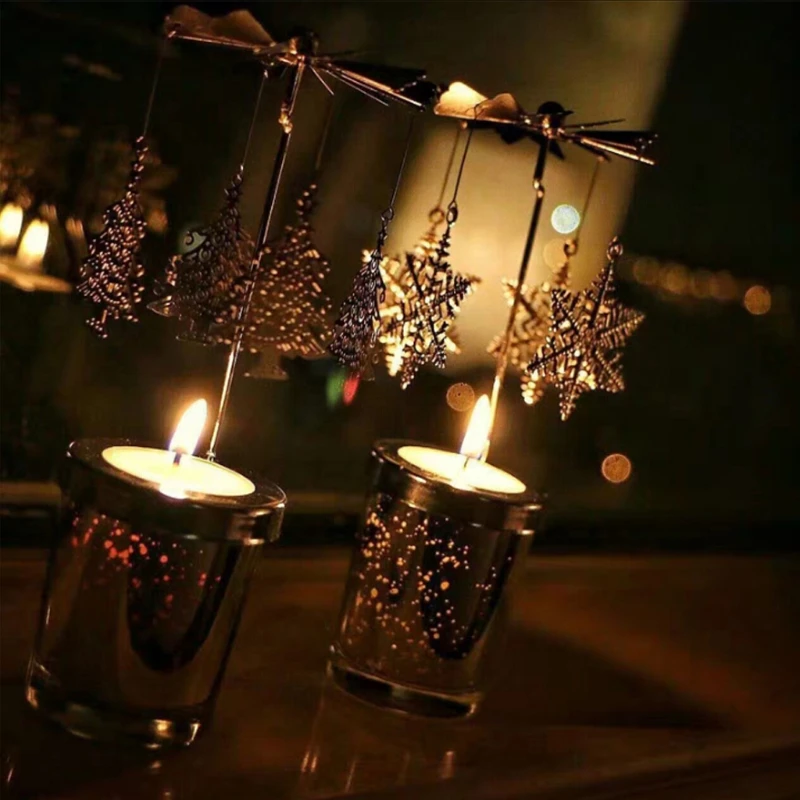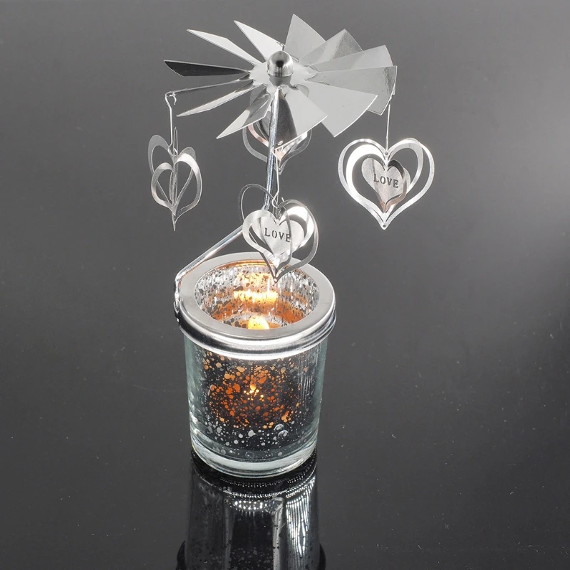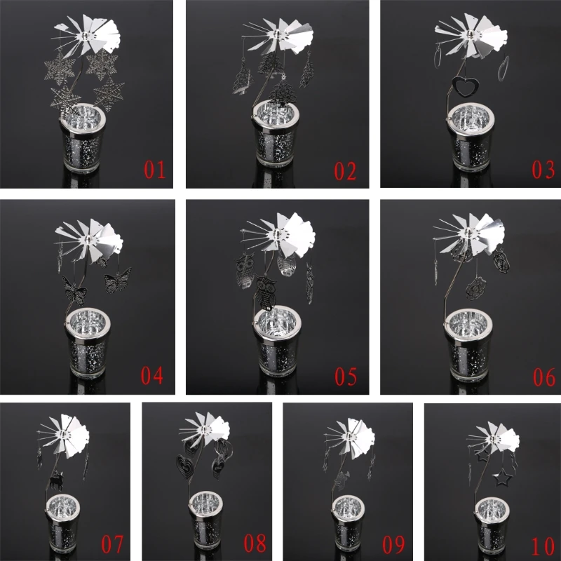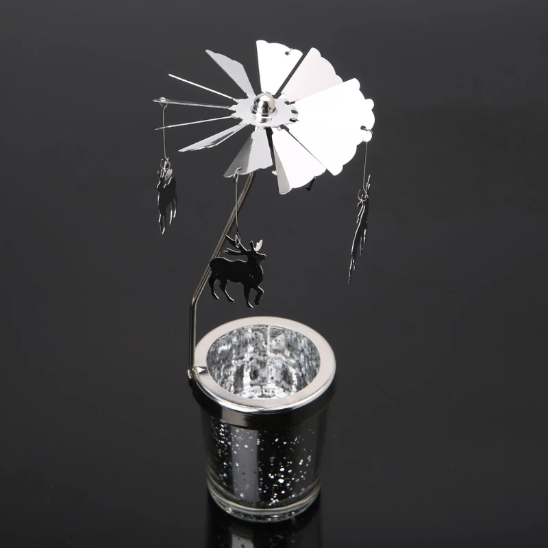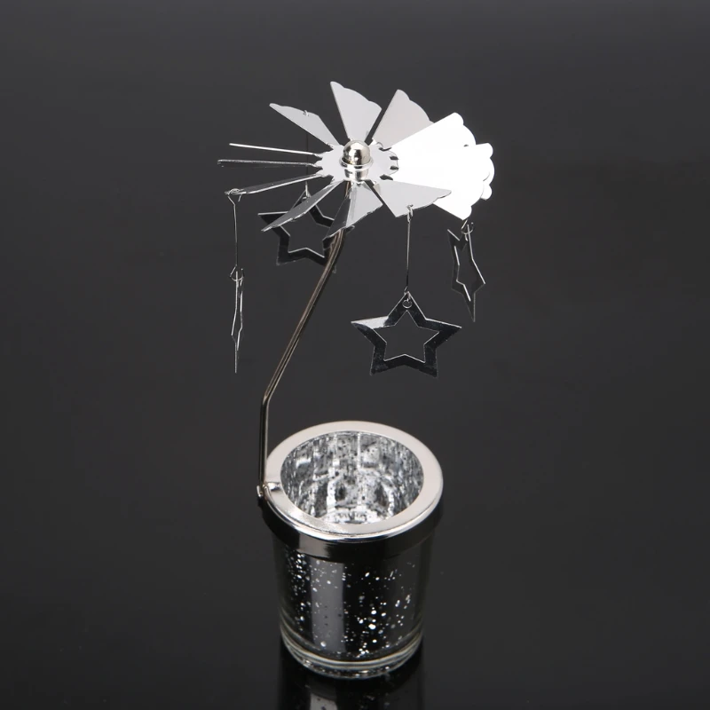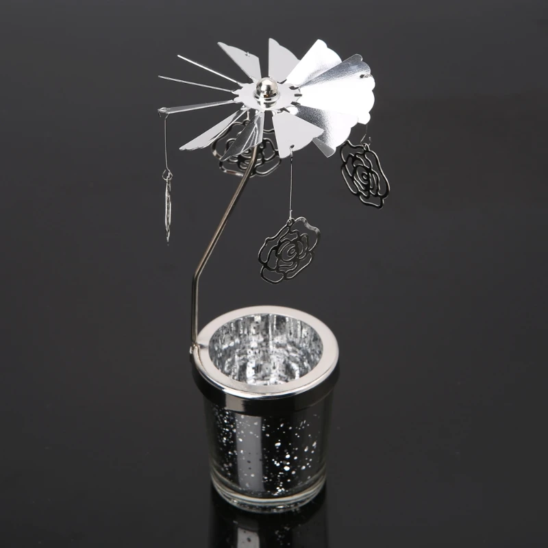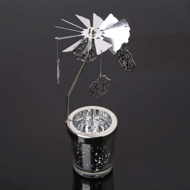 Rotary Holder Metal Spinning Tea Light Cup Romantic Candlestick Ornament F1FB