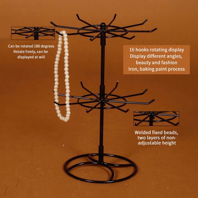 Beautiful Design: The jewelry display stand can be rotated 180 degrees for easy access to your jewelry. 16 hooks can be rotated to show different viewing angles, which is both beautiful and stylish.