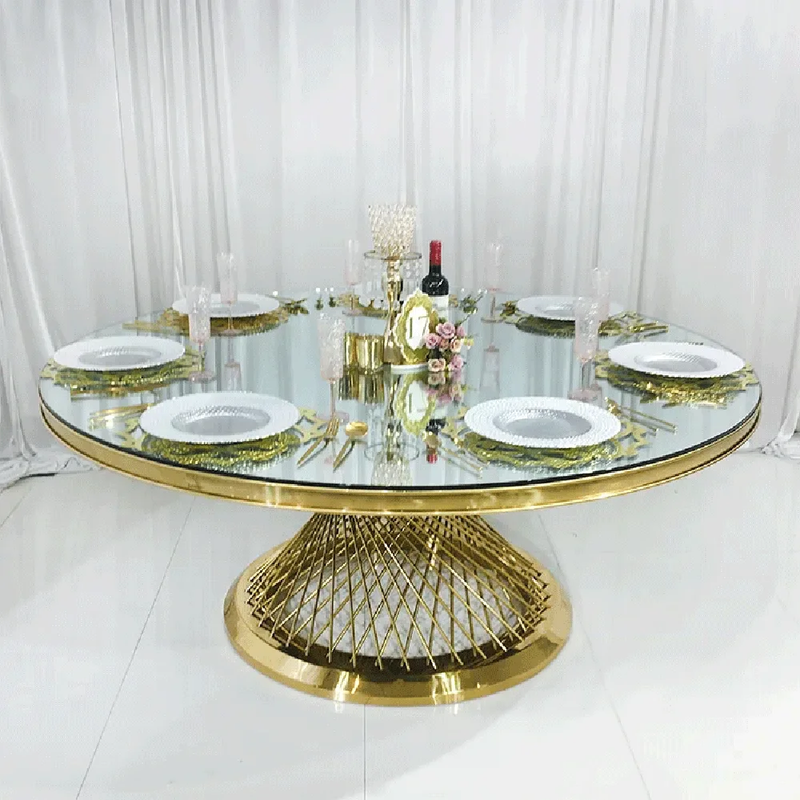 Round glass top small golden round stainless steel tables for wedding dining hall