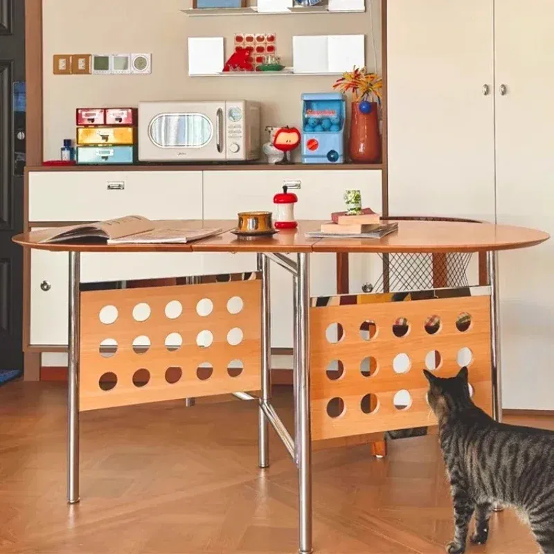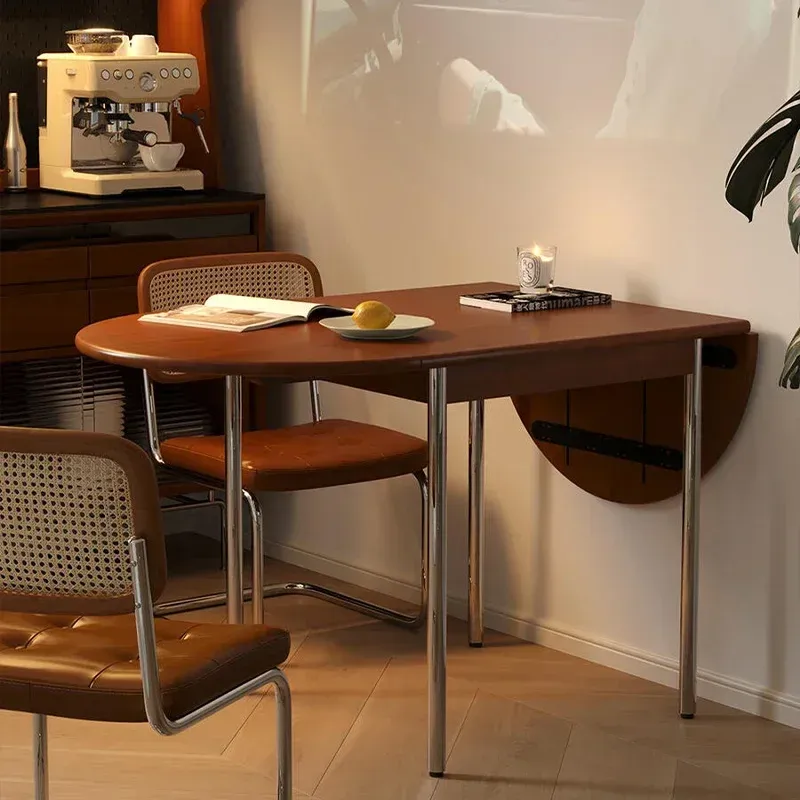 Round Home 304 Stainless Steel Solid Wood Folding Retractable Oval Dining Table Portable Corner Tables Dining Room Furniture