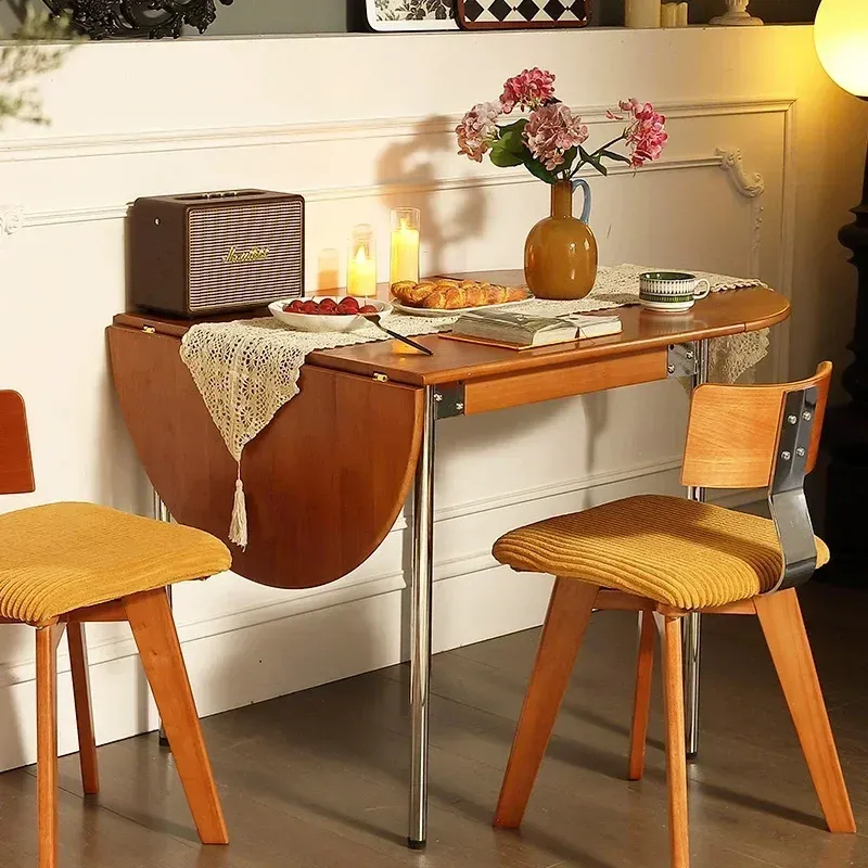 Round Home 304 Stainless Steel Solid Wood Folding Retractable Oval Dining Table Portable Corner Tables Dining Room Furniture