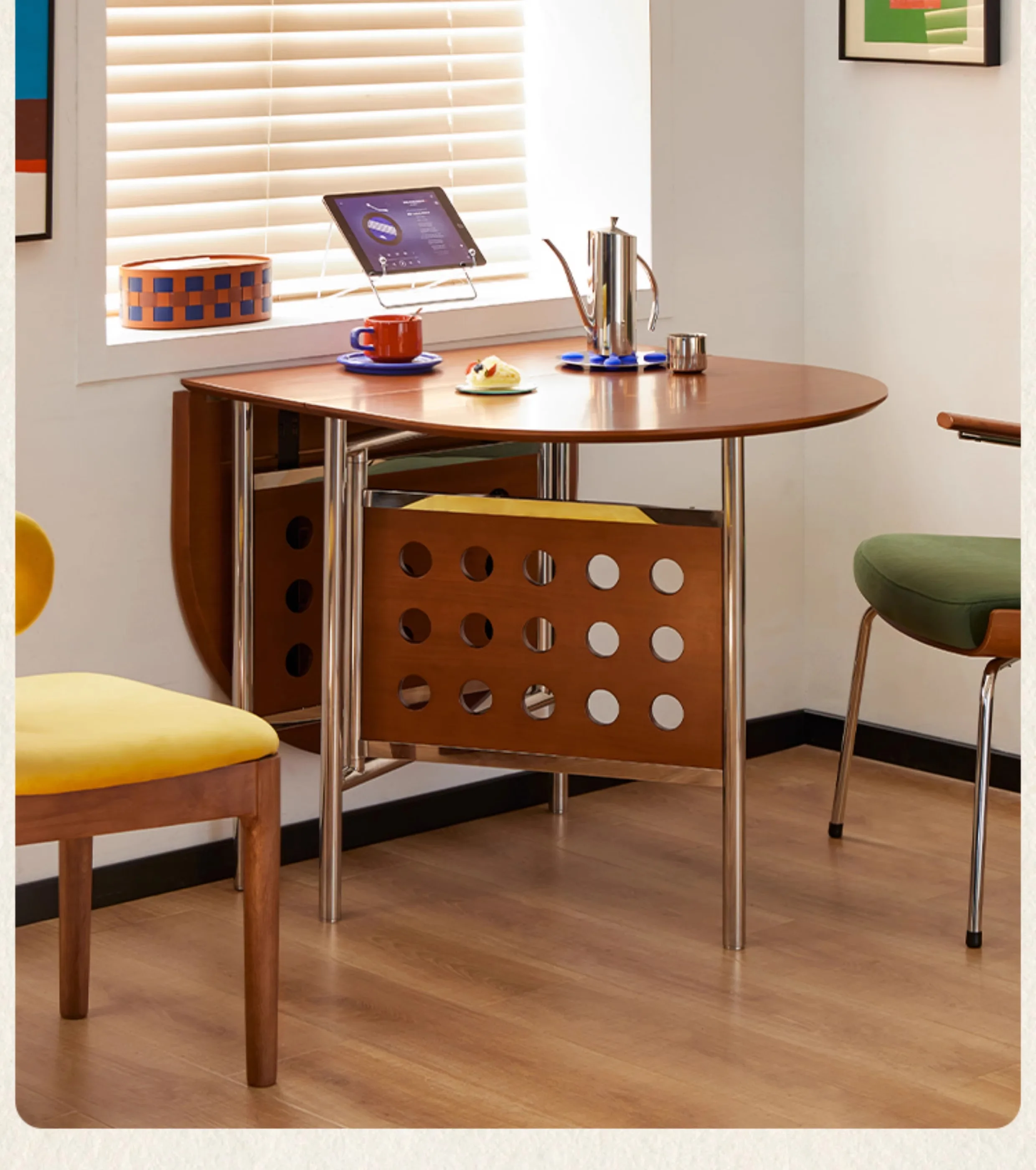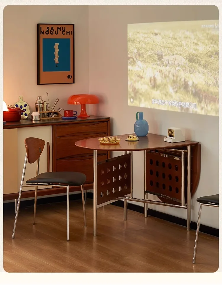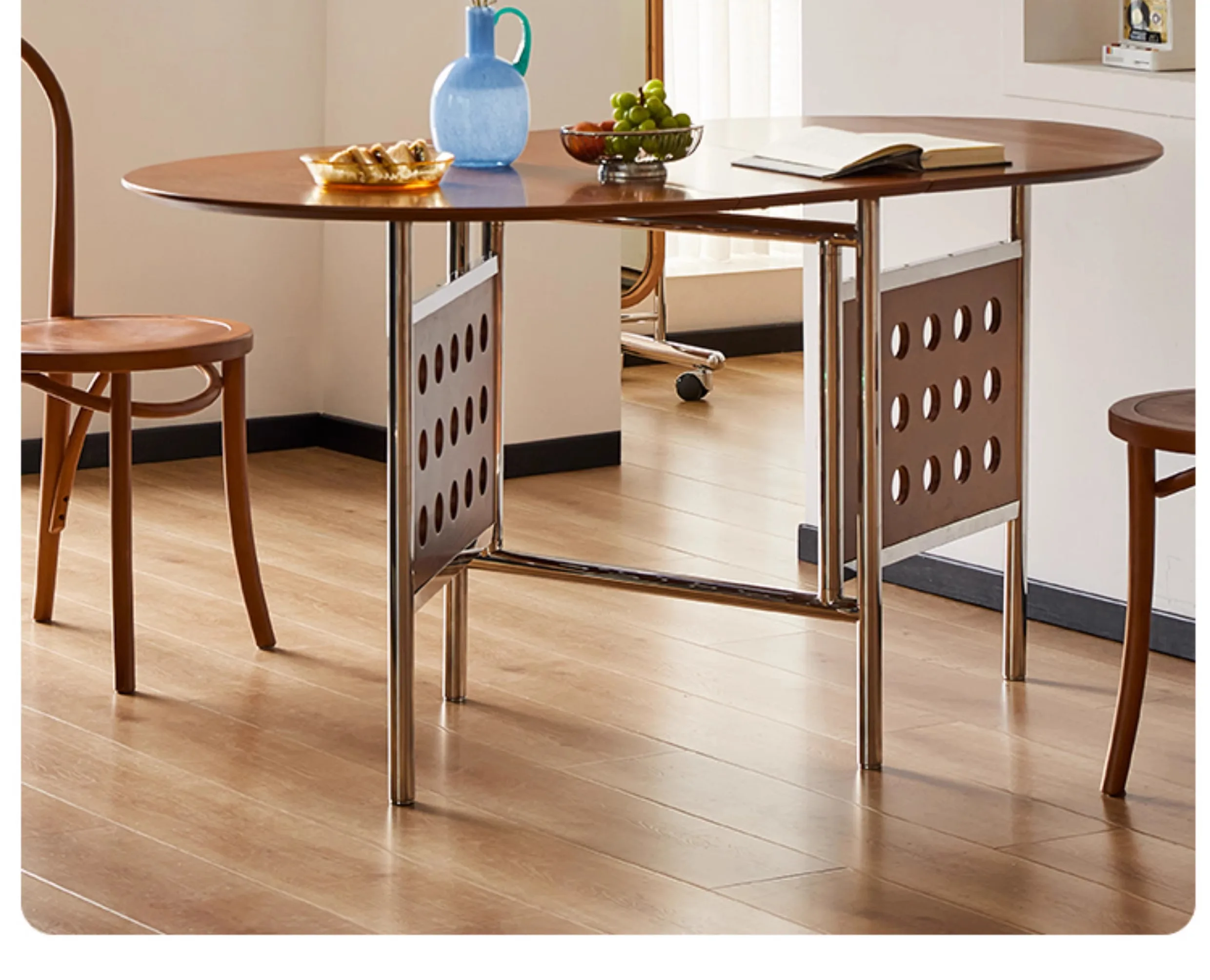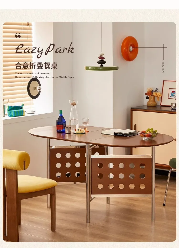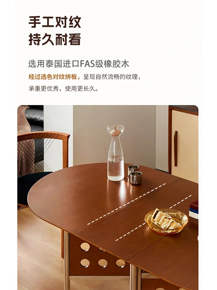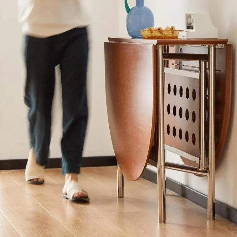Round Home 304 Stainless Steel Solid Wood Folding Retractable Oval Dining Table Portable Corner Tables Dining Room Furniture