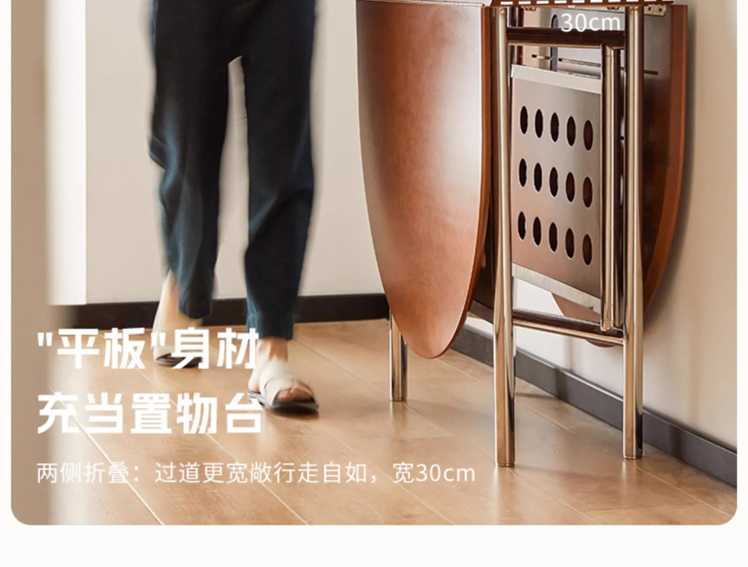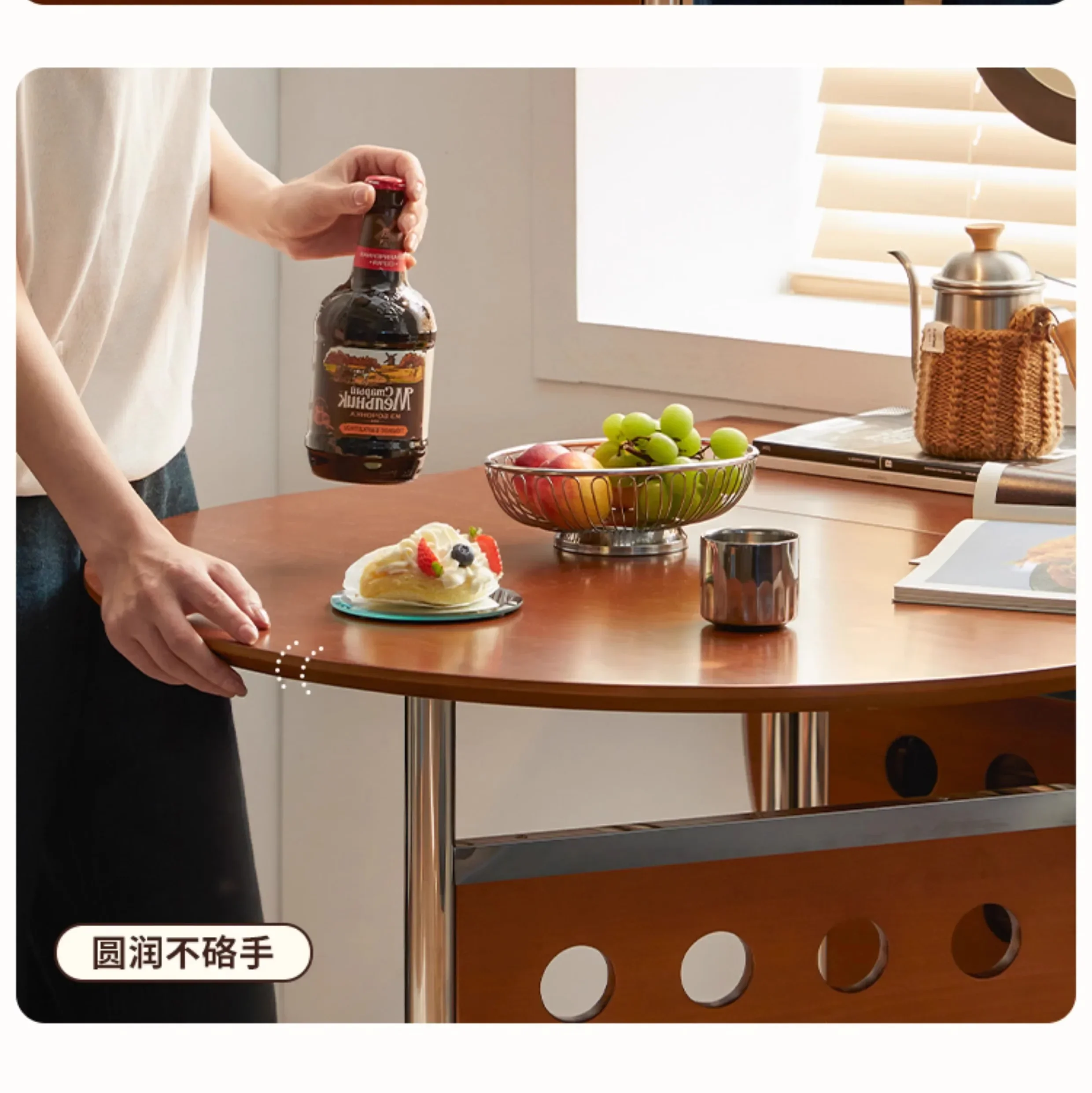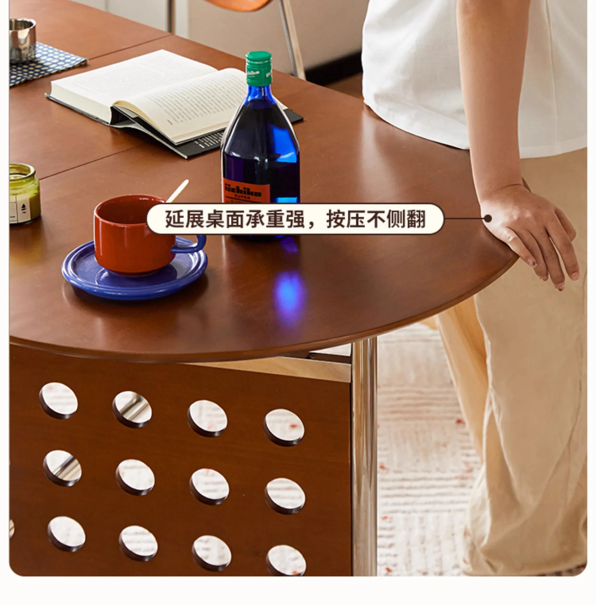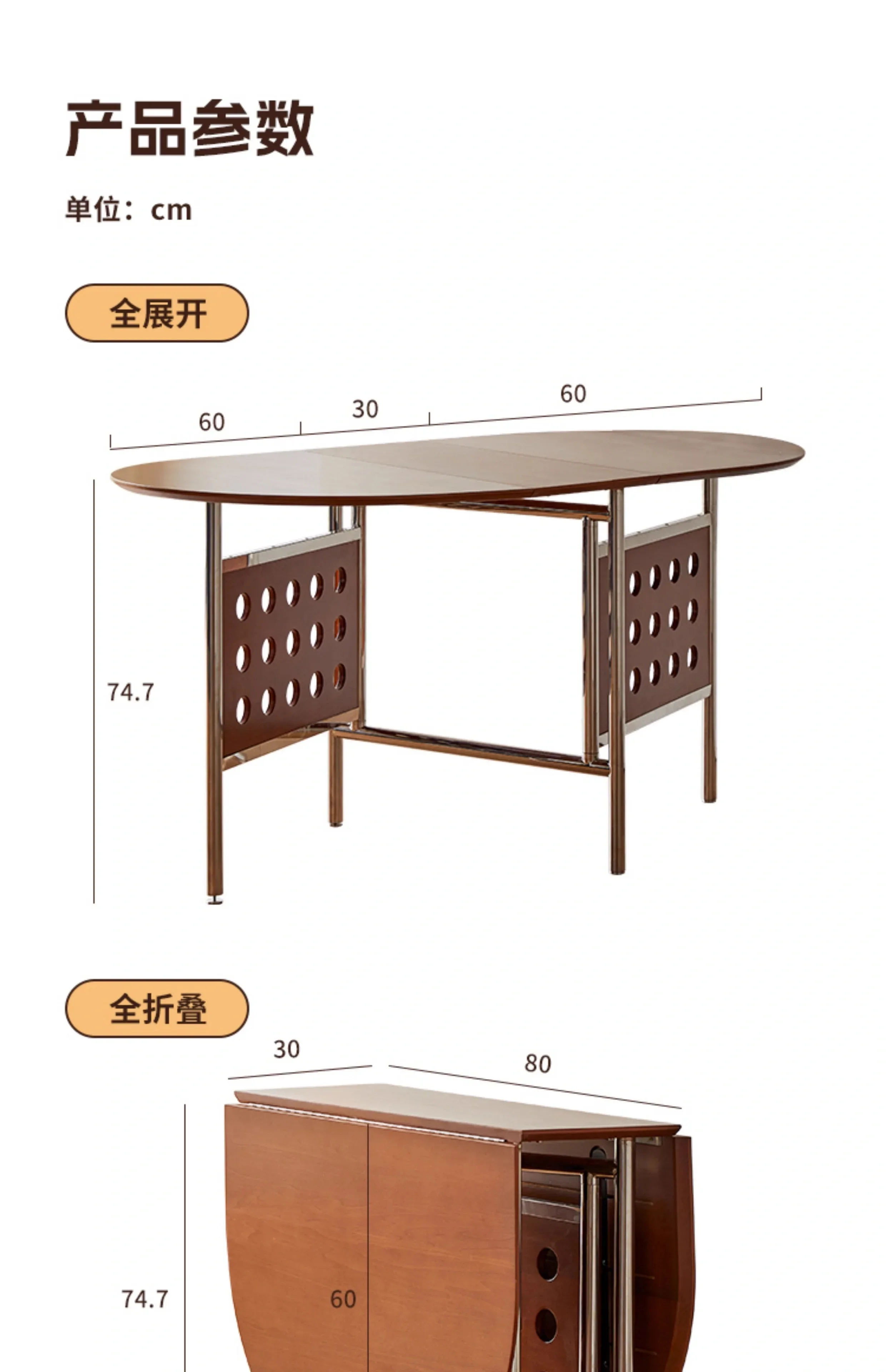 Round Home 304 Stainless Steel Solid Wood Folding Retractable Oval Dining Table Portable Corner Tables Dining Room Furniture