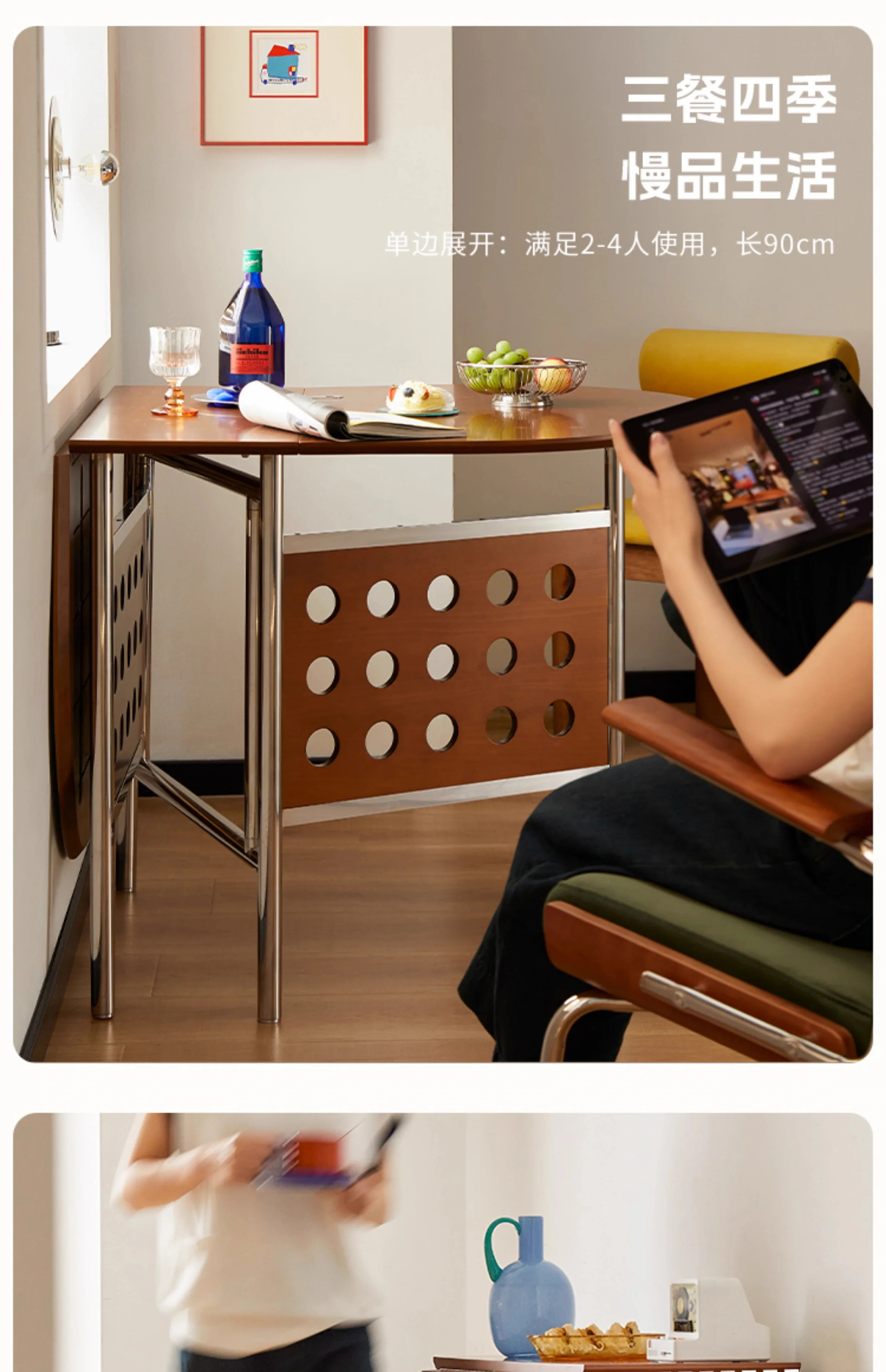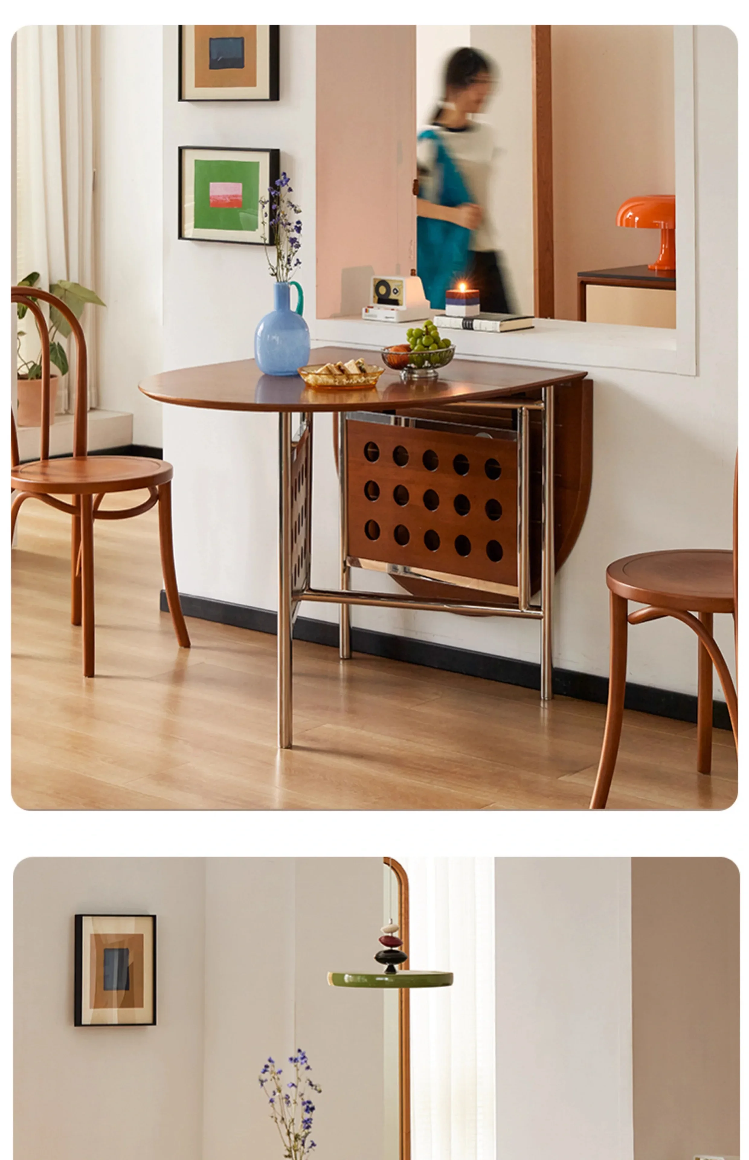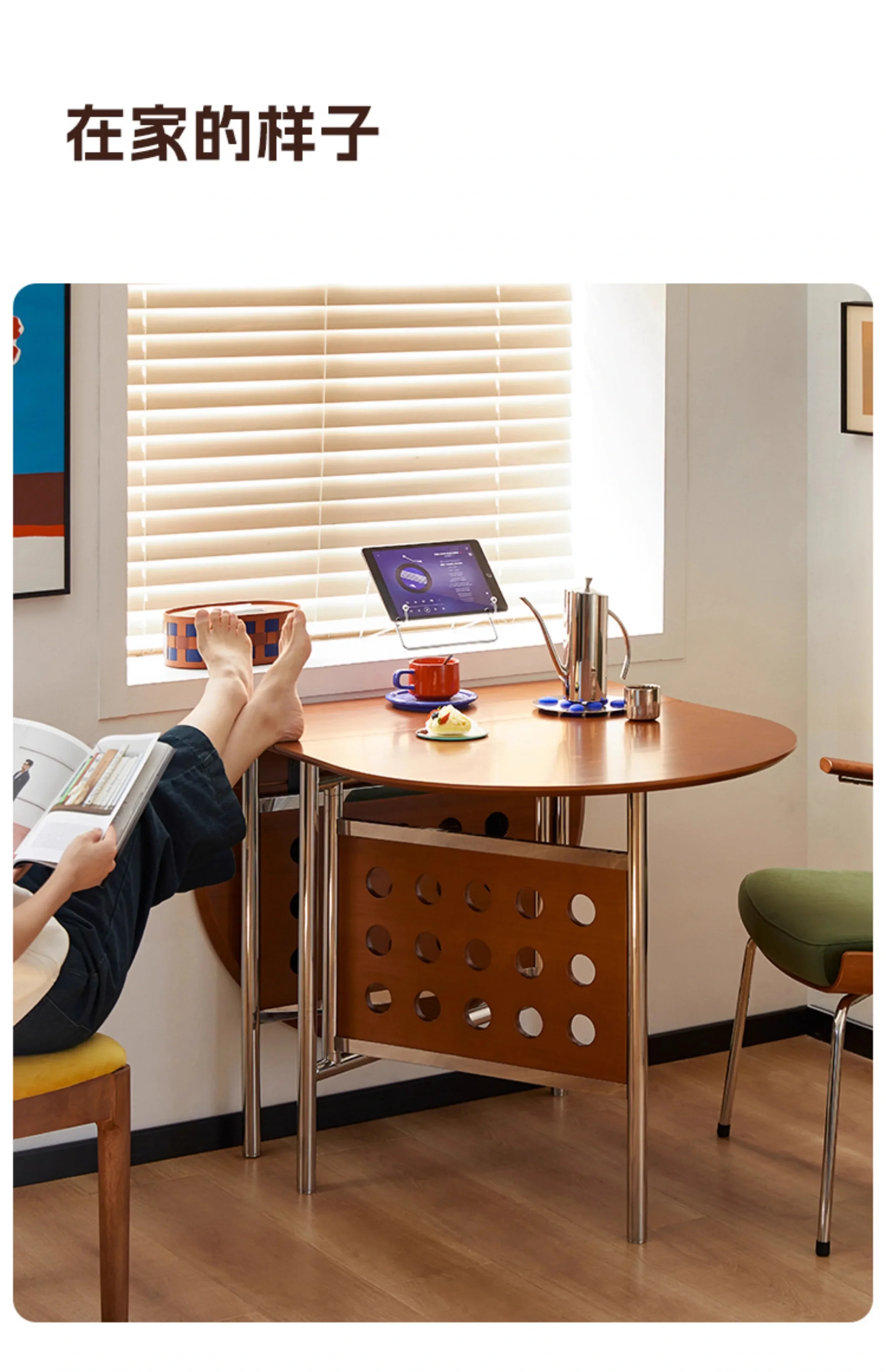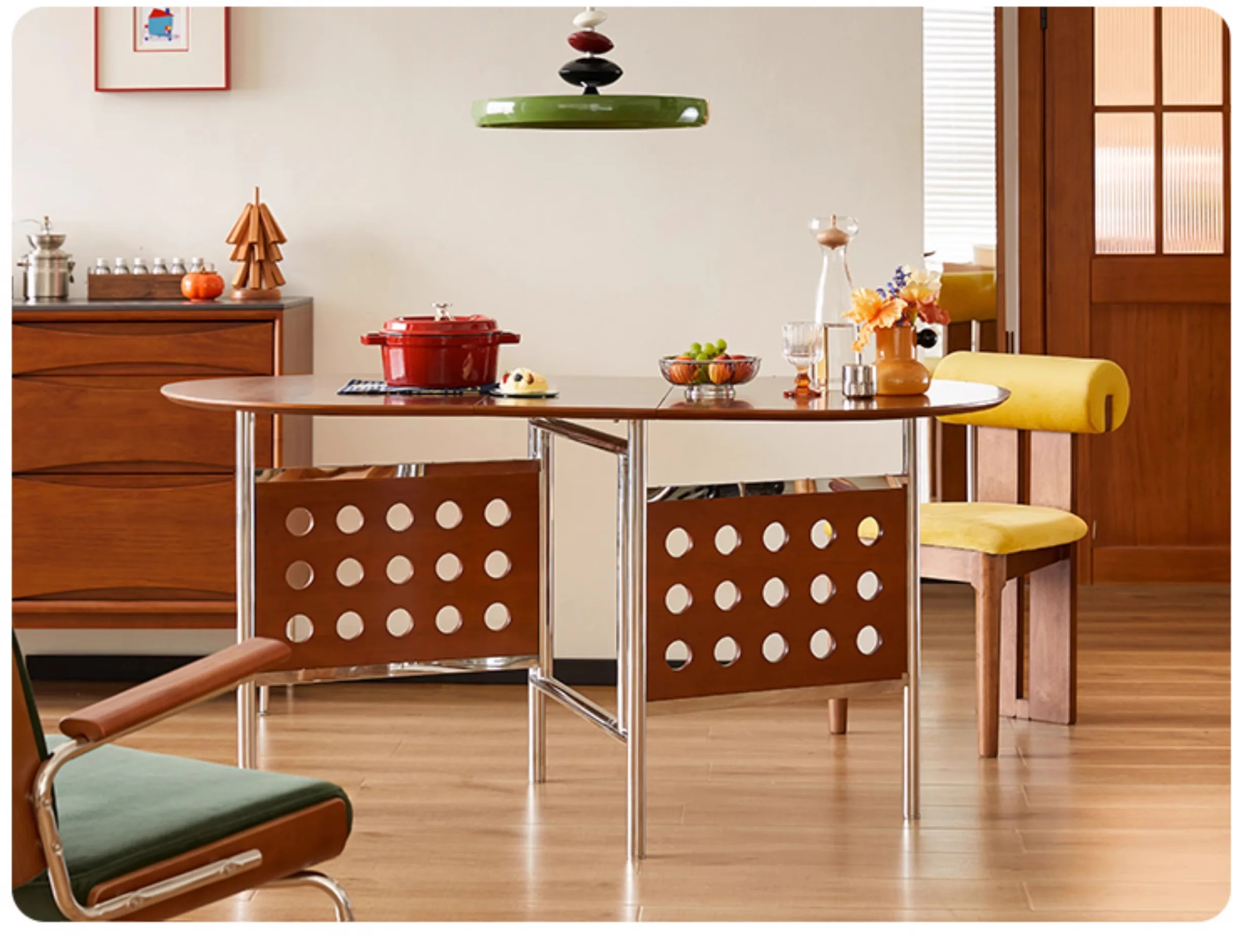Round Home 304 Stainless Steel Solid Wood Folding Retractable Oval Dining Table Portable Corner Tables Dining Room Furniture