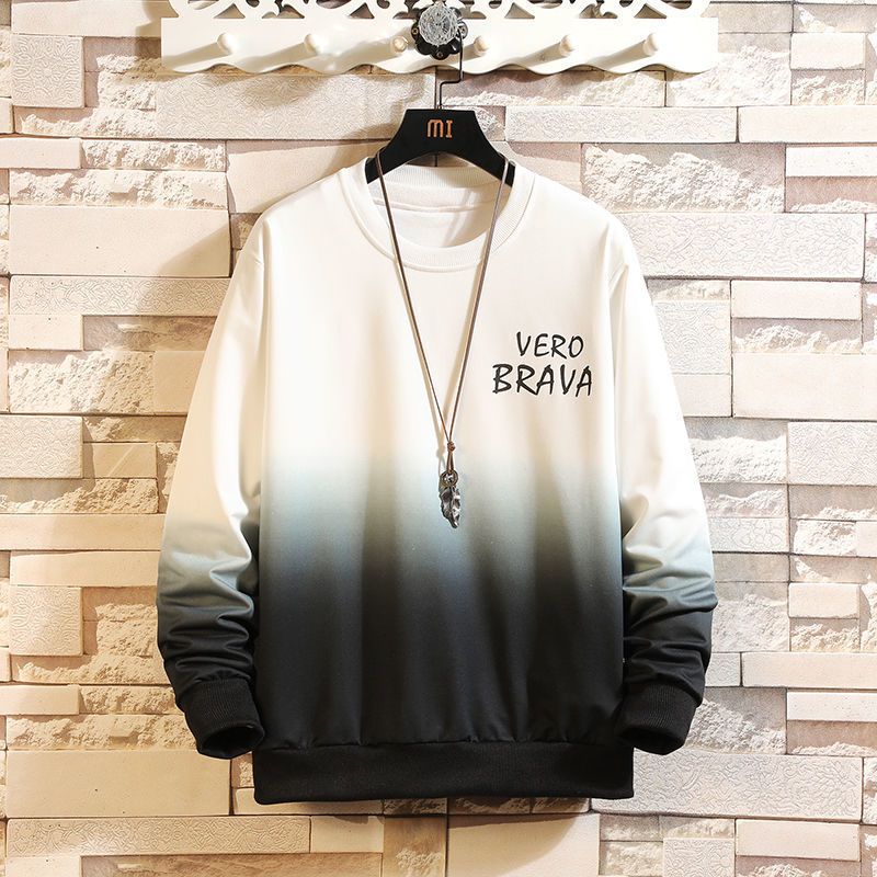 Round Neck Gradient Long-Sleeved Casual Suit White 5XL