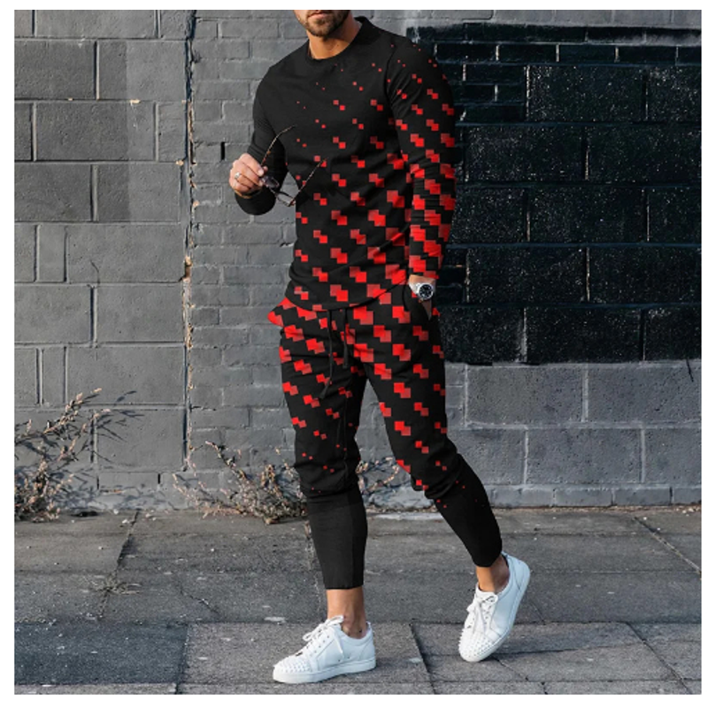 Round Neck Long Sleeve T-shirt Trousers Suit Men 3 Style 4XL
